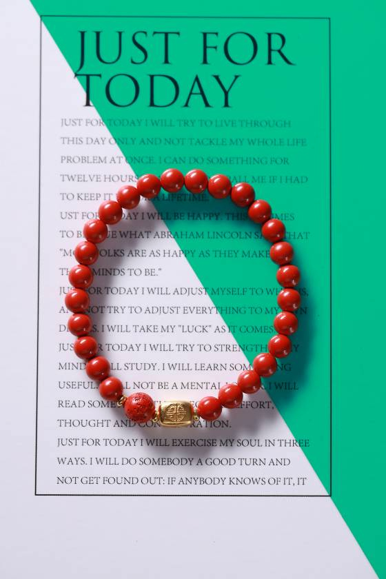 YHZS0082°朱砂珠+沙金团寿椭圆珠手串0.6*26