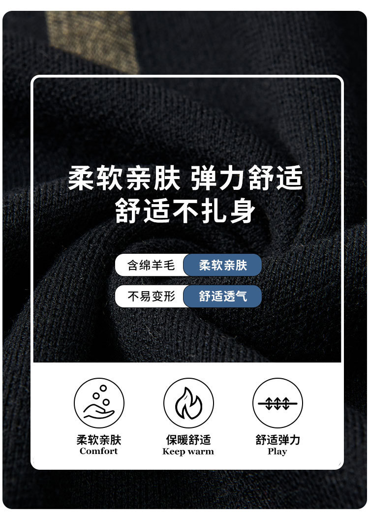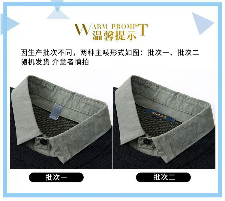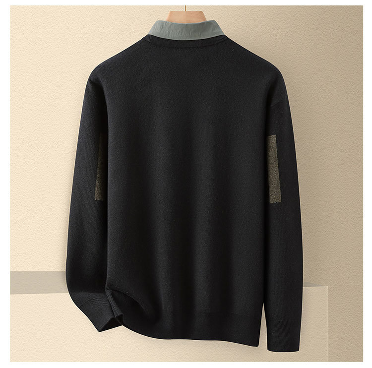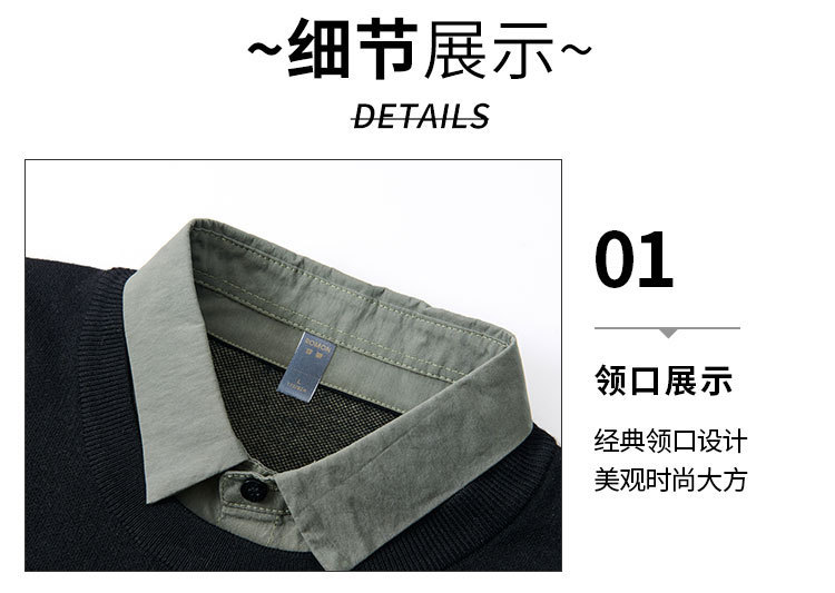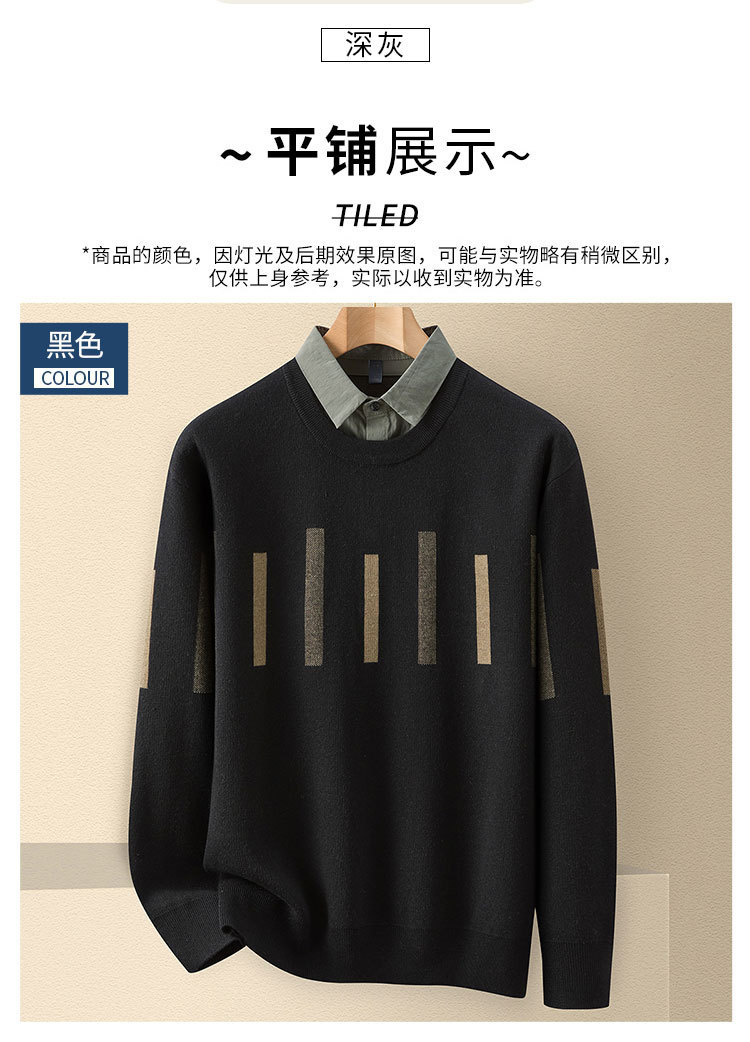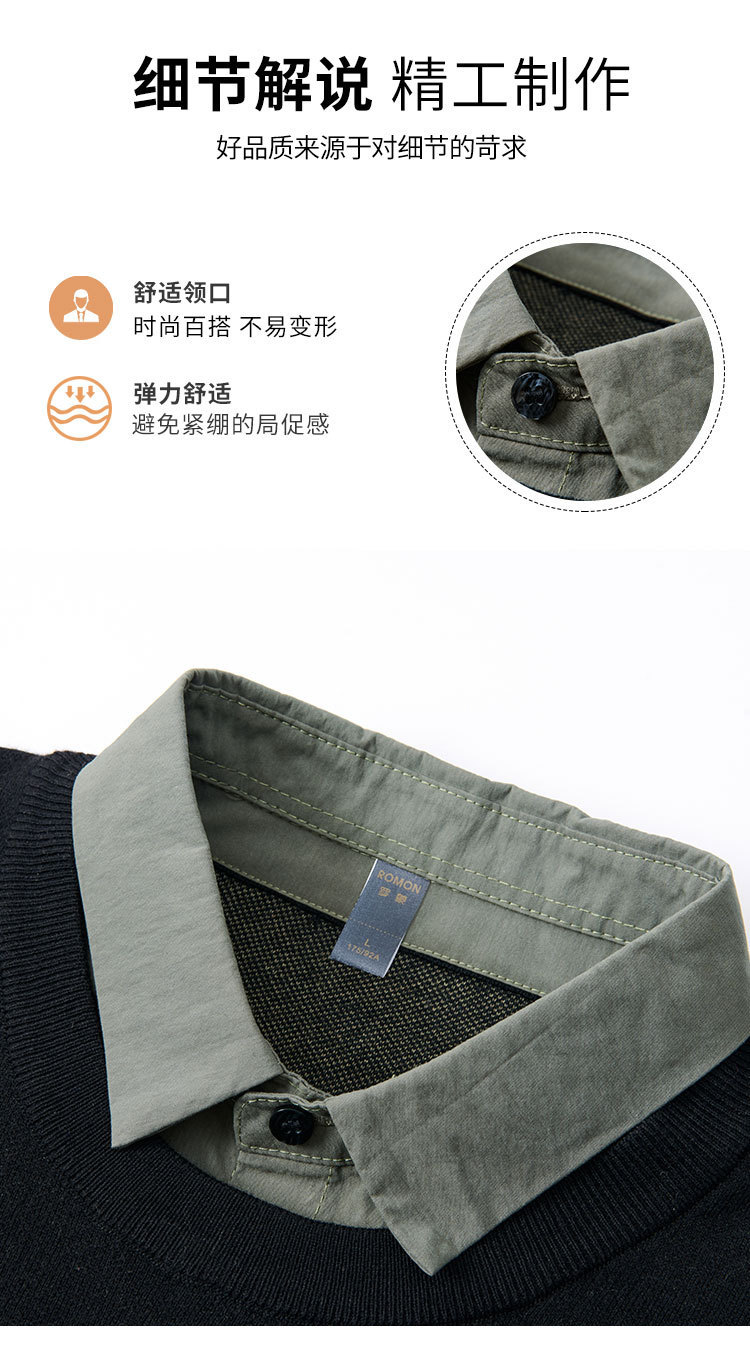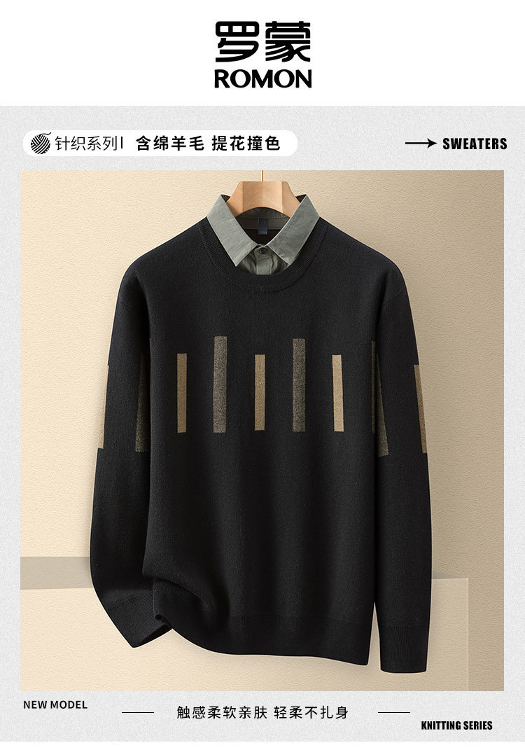 【提花撞色】罗蒙含羊毛假两件男针织衫男秋冬季衬衫长袖毛衣