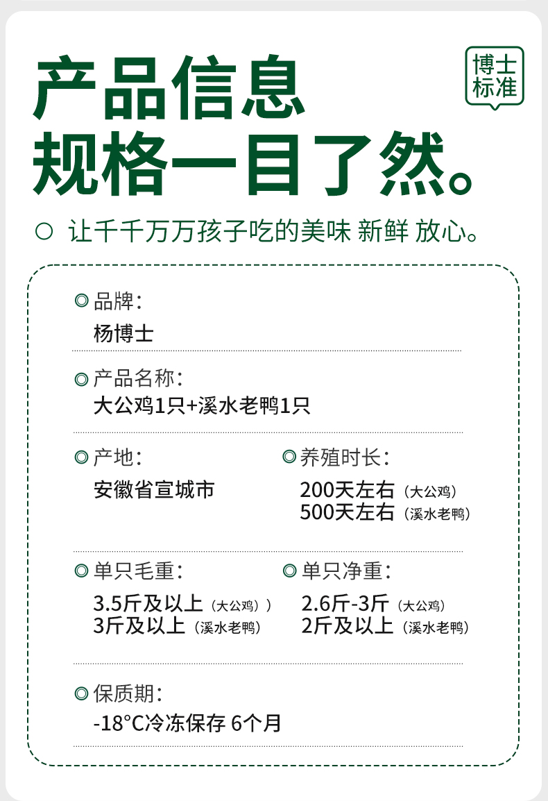 【杨博士自营溪水老鸭1只+大公鸡1只 】 下单还有好礼相送
