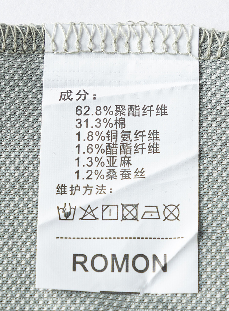 面料:62.8%聚酯纤维31.3%棉1.8%铜氨纤维1.6%醋酯纤维1.3%亚麻1.2%桑蚕丝
