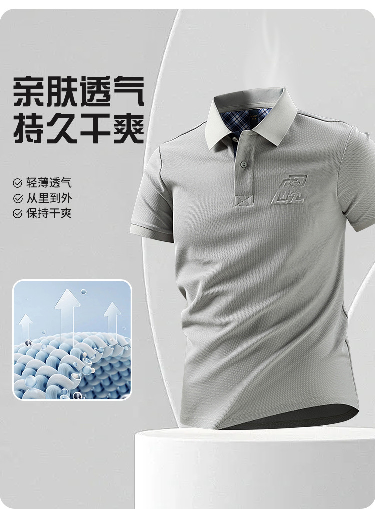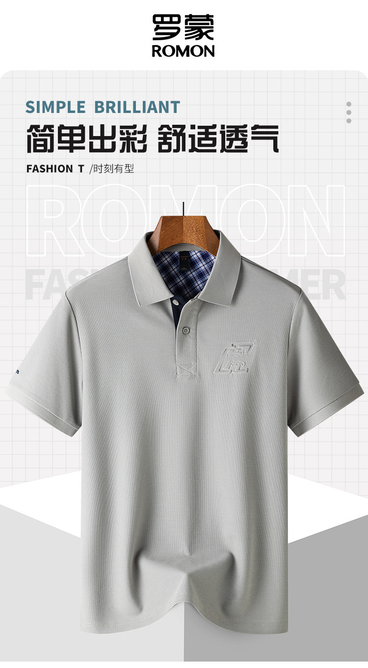 【防晒凉感醋酸亚麻桑蚕丝】罗蒙男士Polo衫休闲通勤t恤男夏季短袖舒适百搭polo衫男