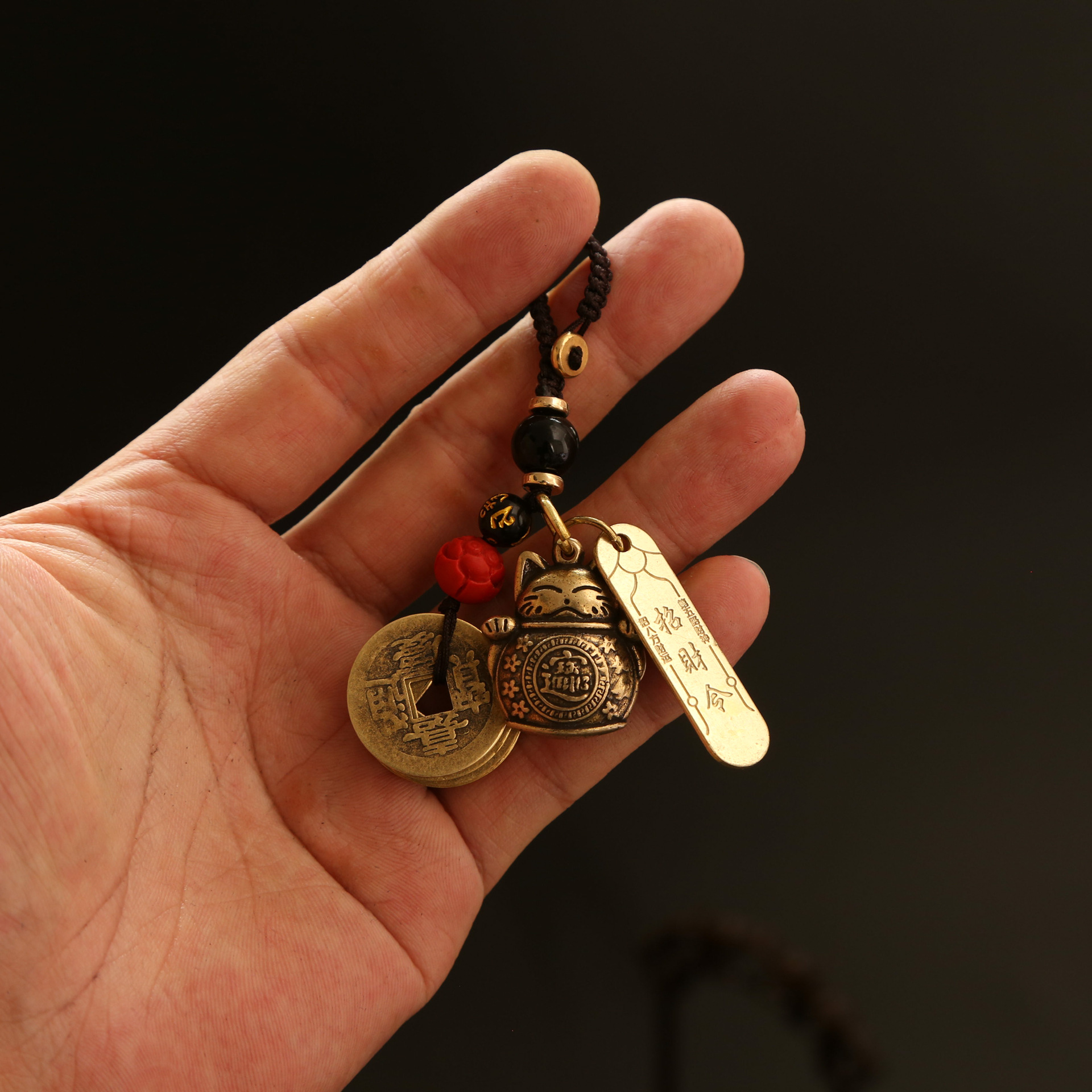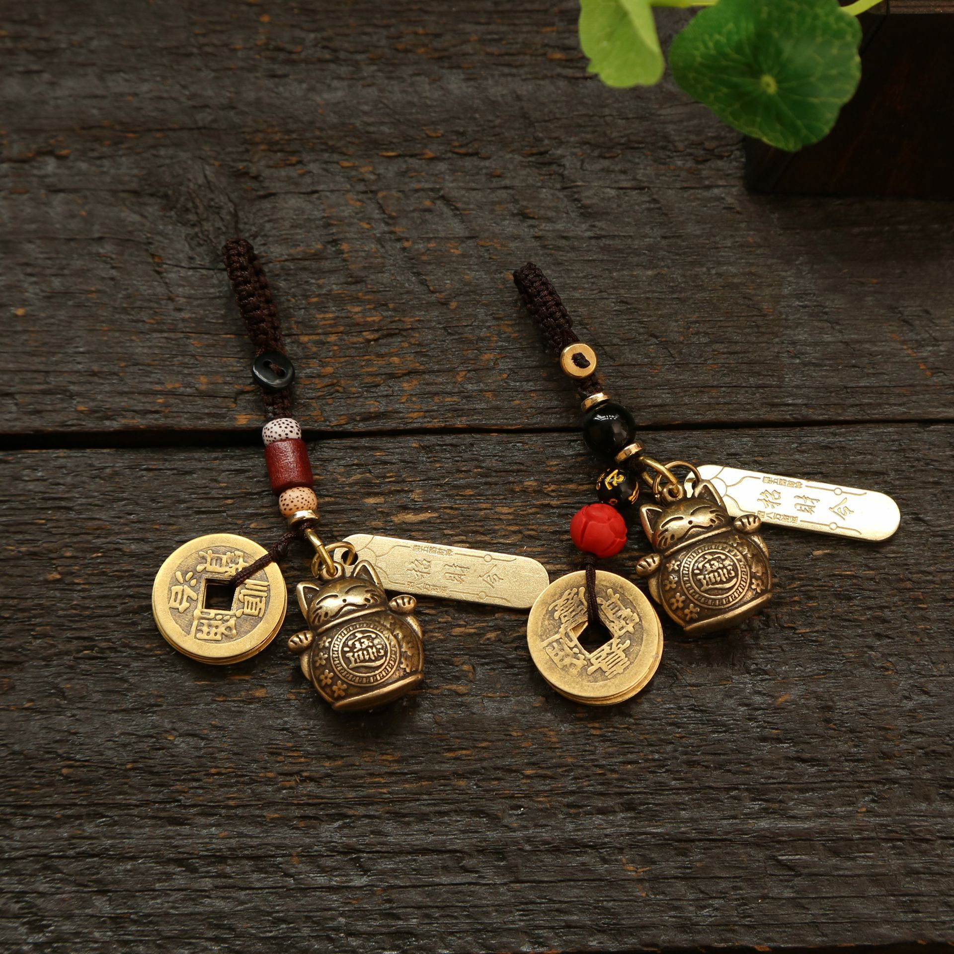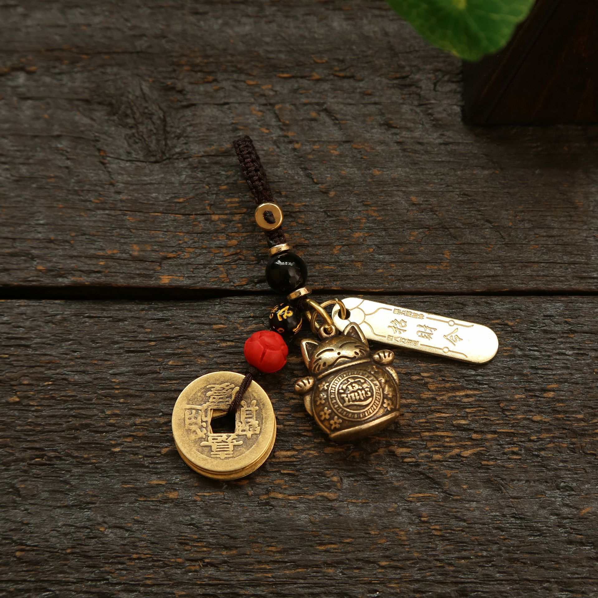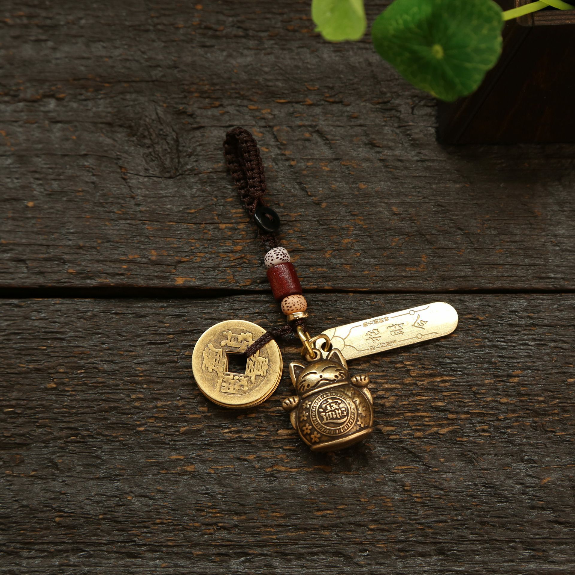 「9.9元包邮!黄铜招财猫挂件」招财令五帝钱钥匙扣挂件 星月菩提绳男女包包挂饰吊坠时尚饰品