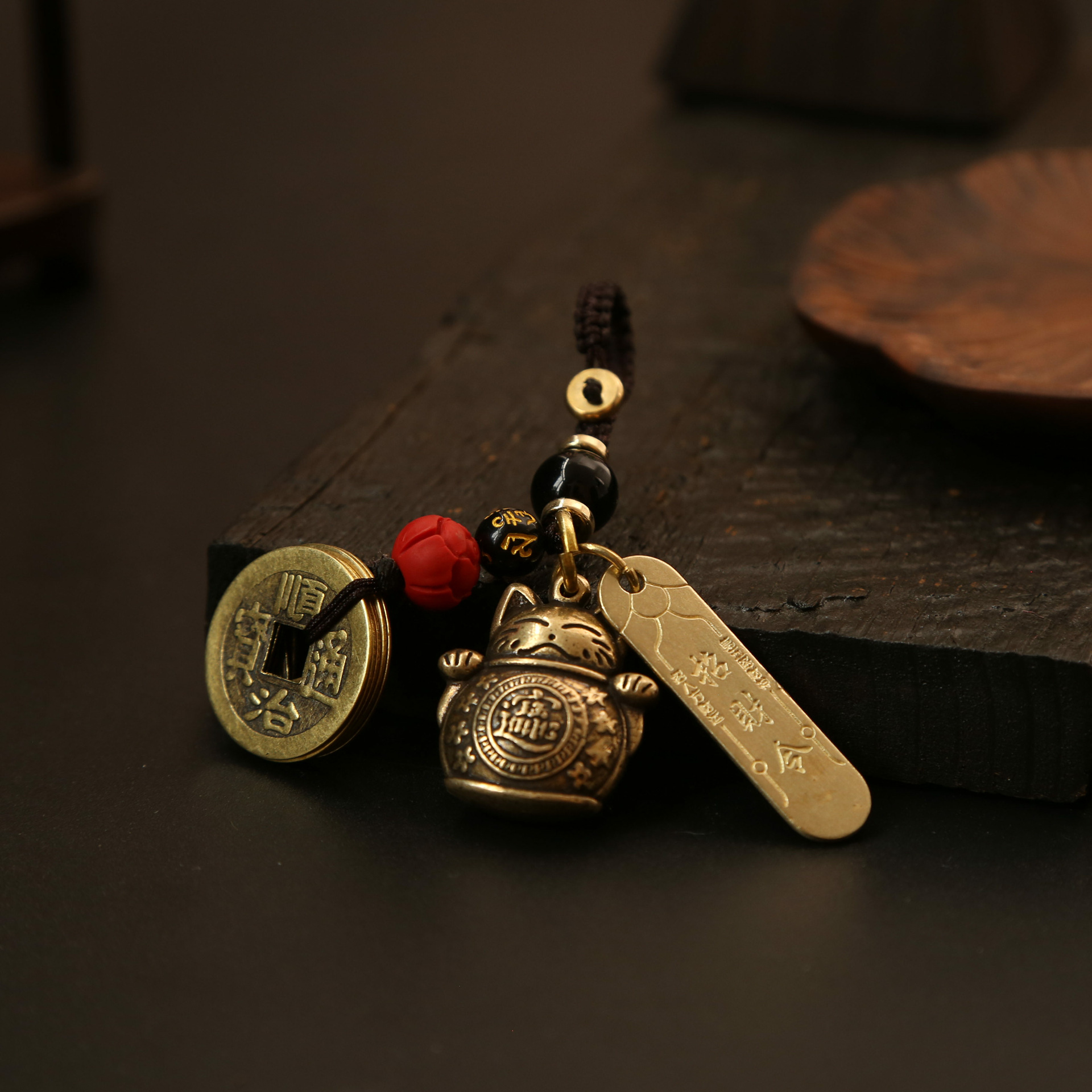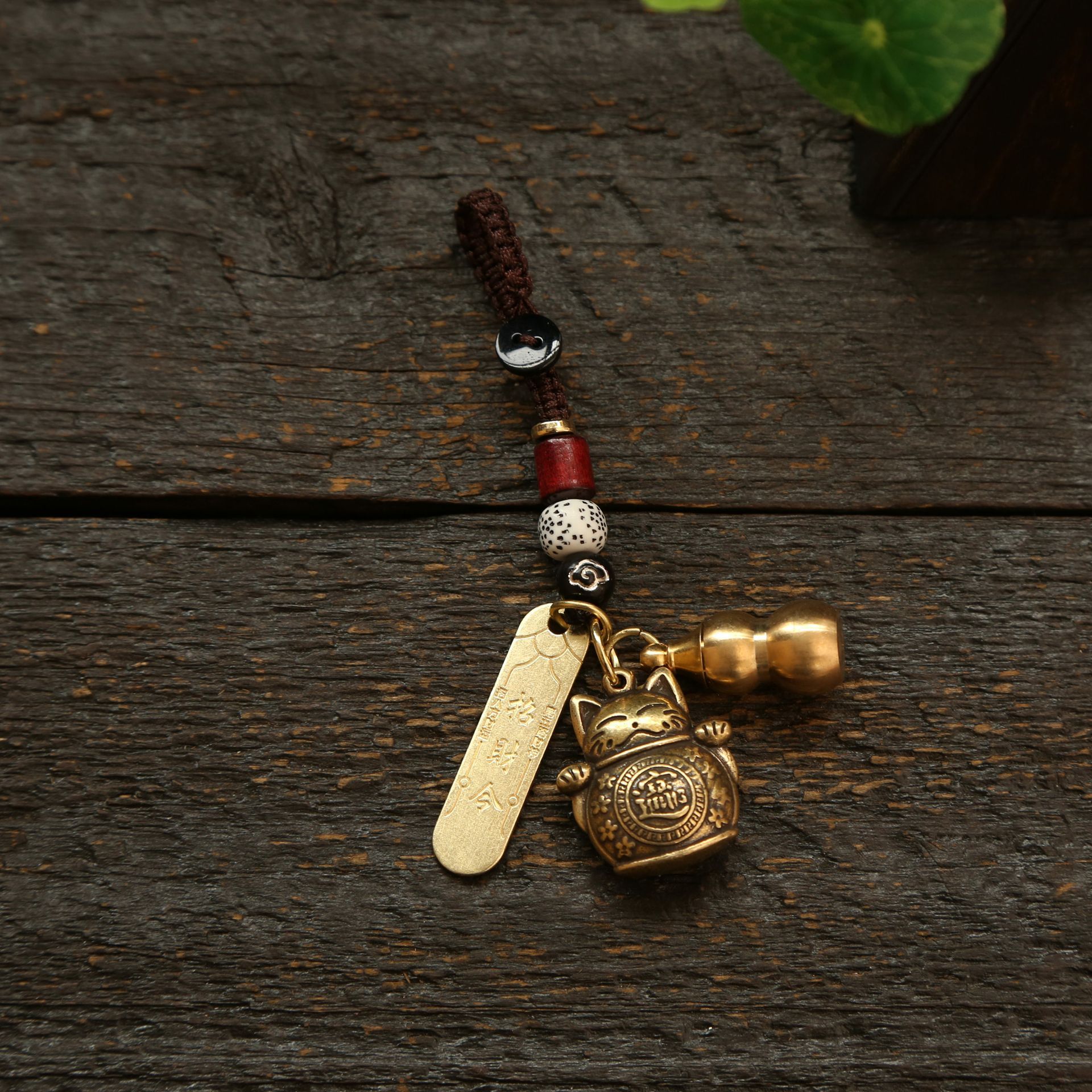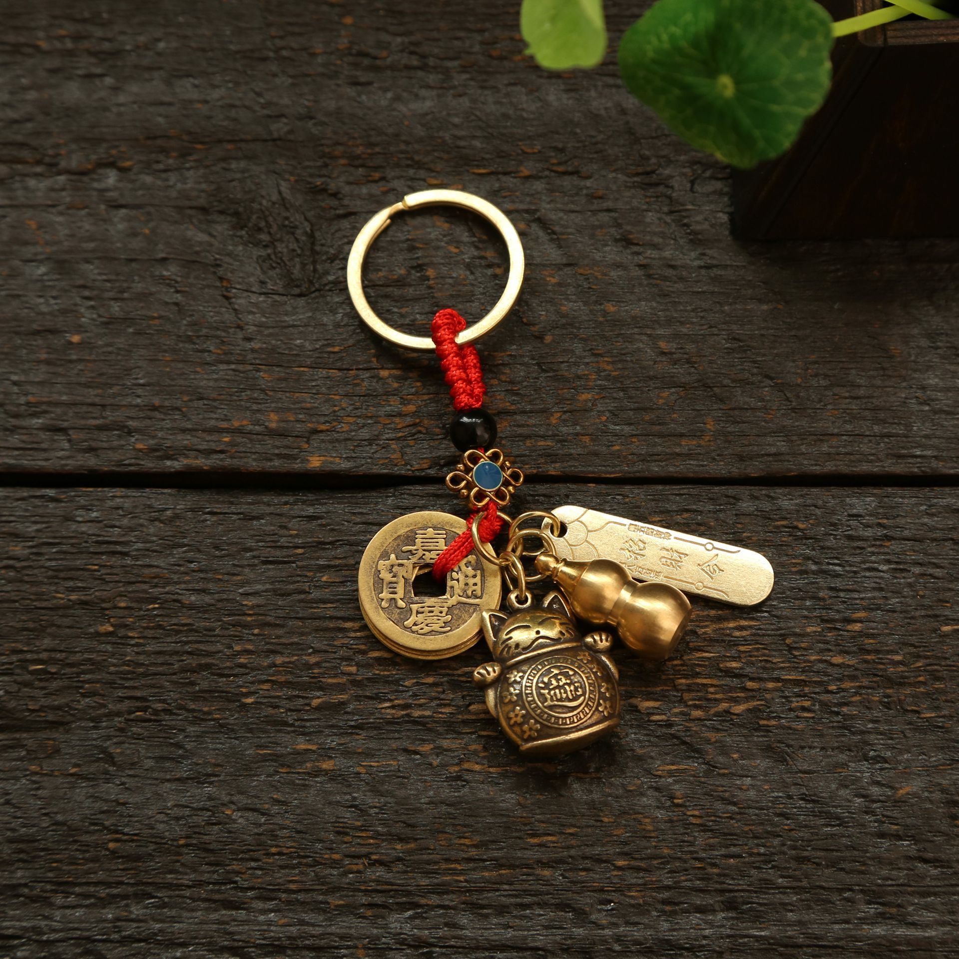 「9.9元包邮!黄铜招财猫挂件」招财令五帝钱钥匙扣挂件 星月菩提绳男女包包挂饰吊坠时尚饰品