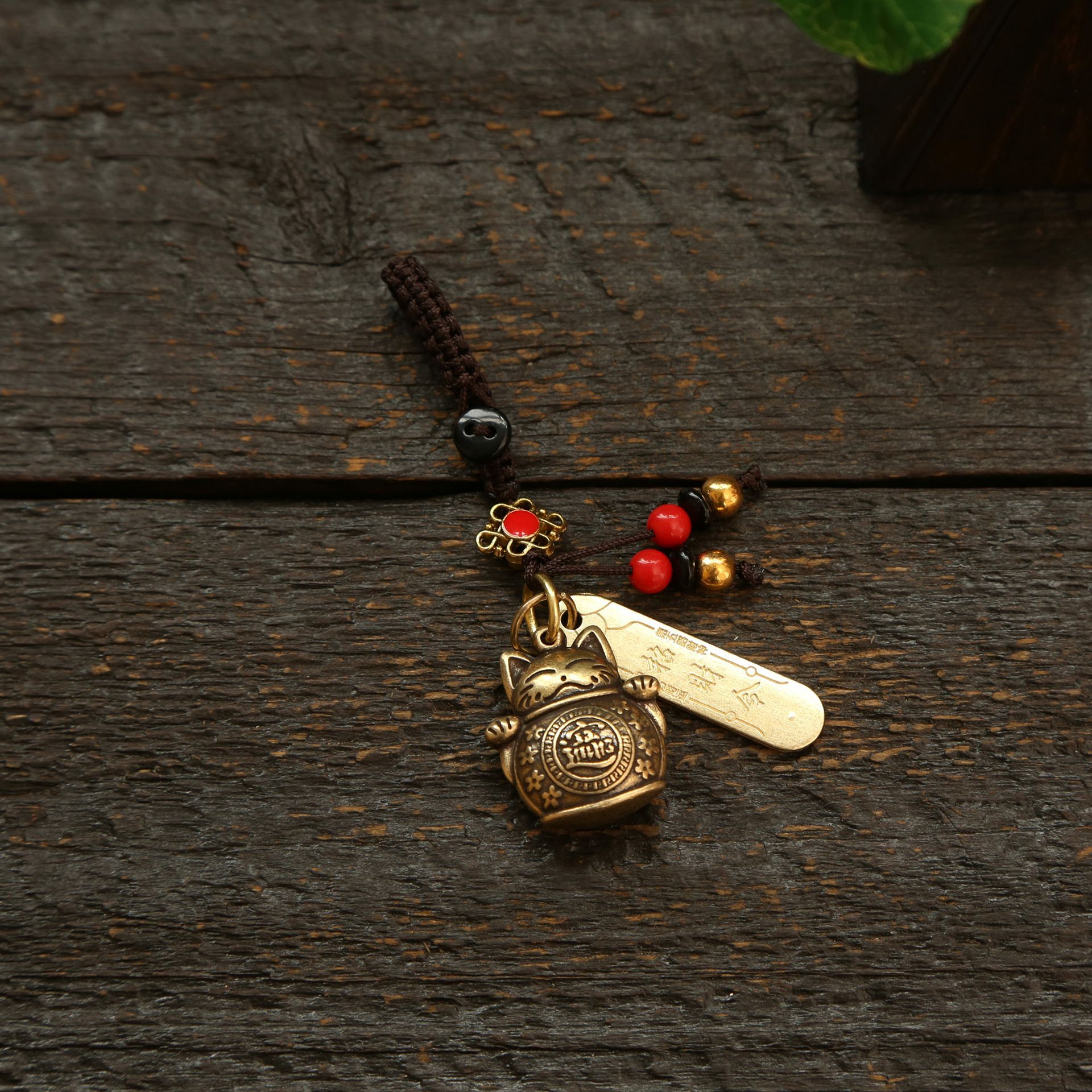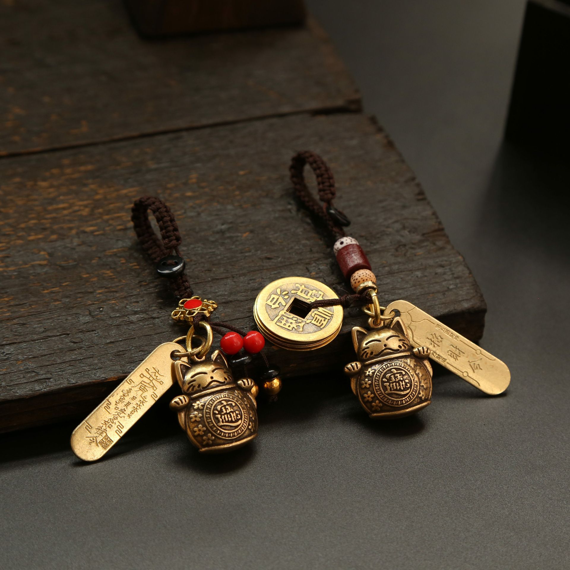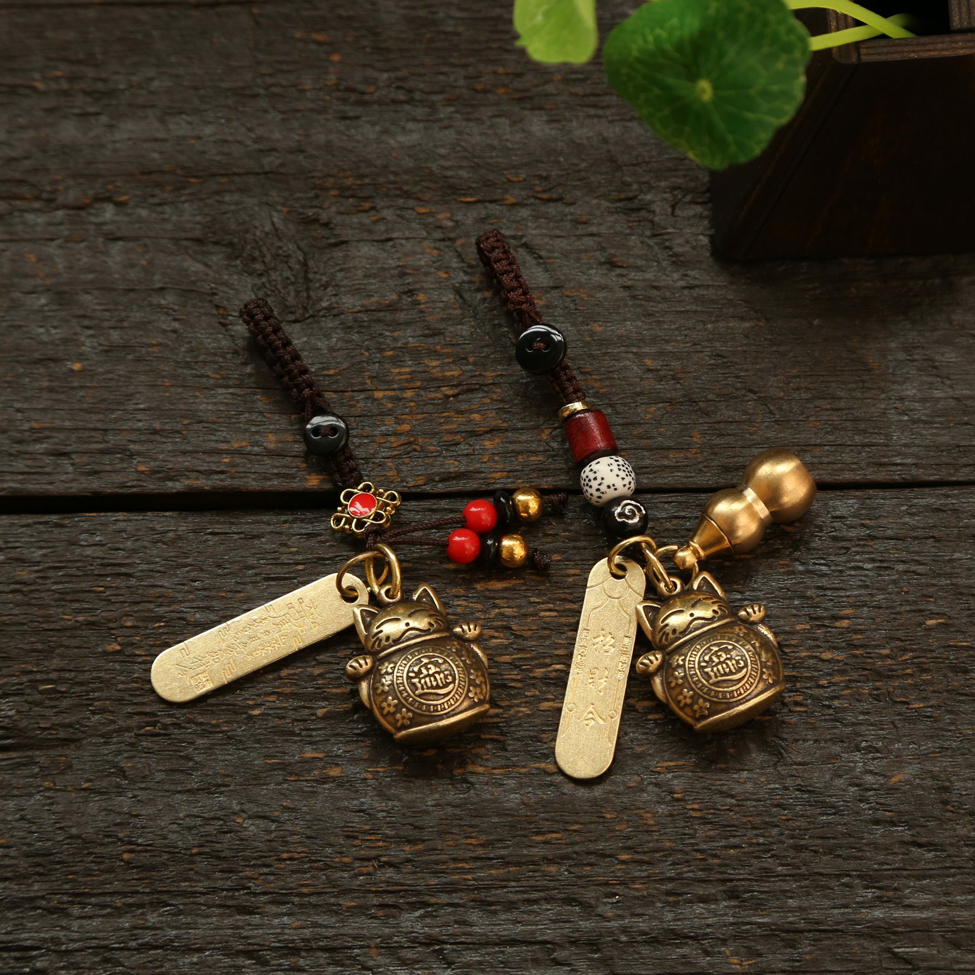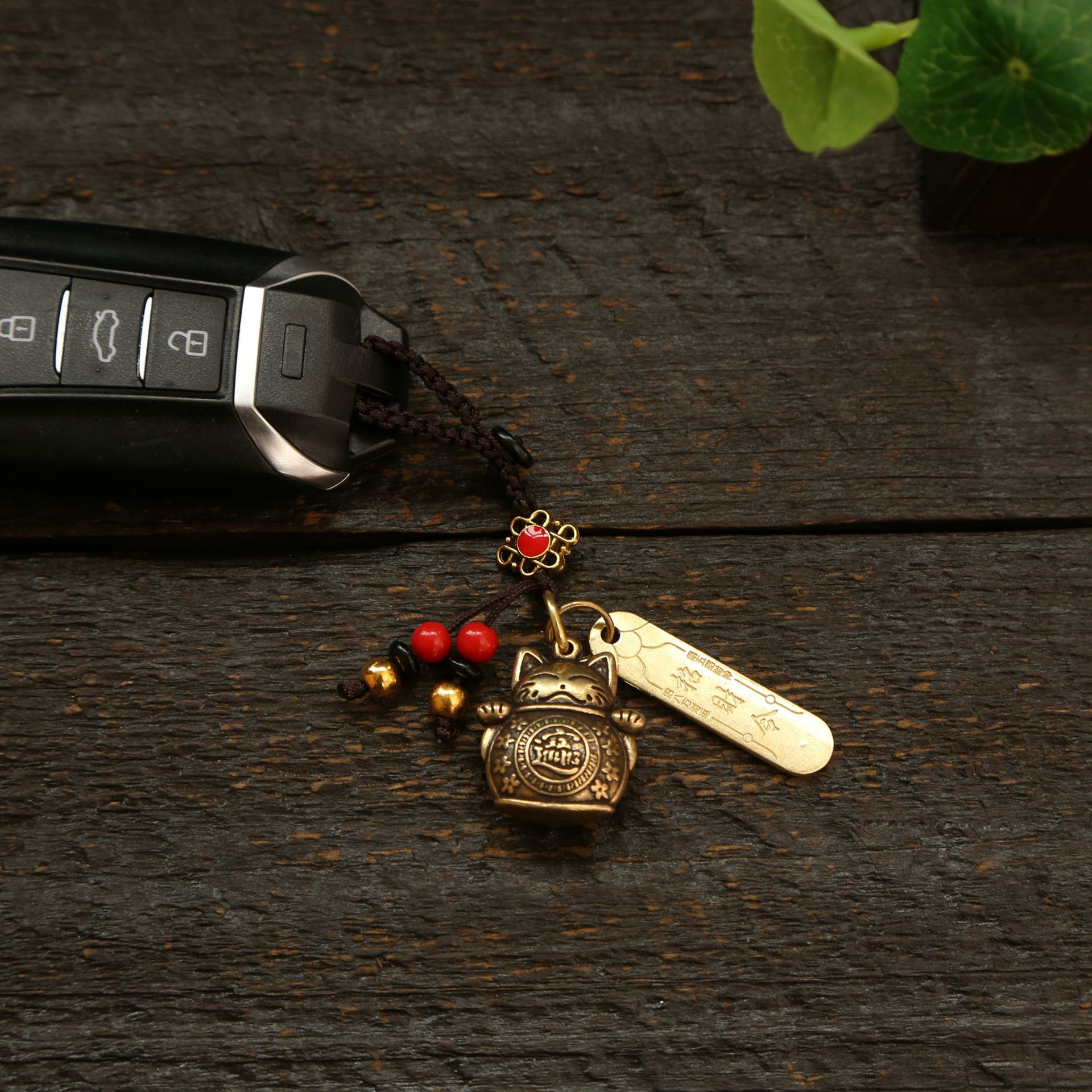 「9.9元包邮!黄铜招财猫挂件」招财令五帝钱钥匙扣挂件 星月菩提绳男女包包挂饰吊坠时尚饰品