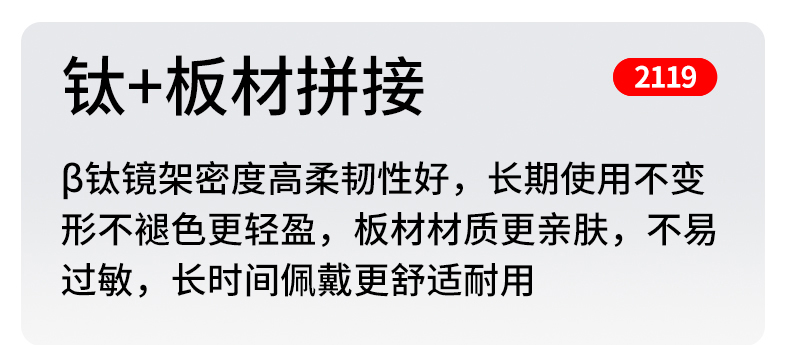 普莱斯眼镜光学镜框2119 钛+板材拼接 修颜时尚 男女同款 三色可选