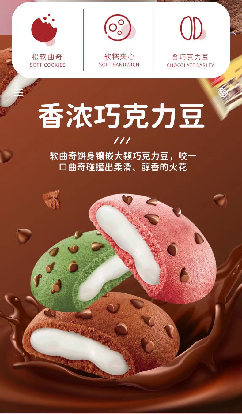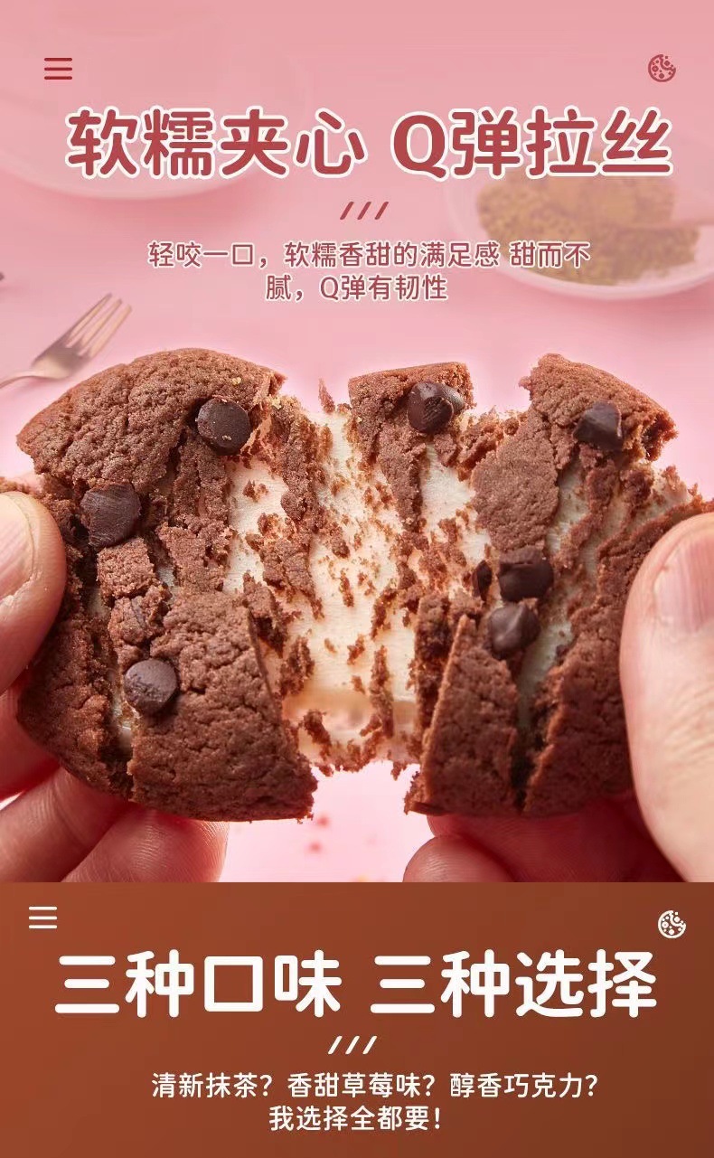 「三款口味!单独包装」元气打糕巧克力曲奇夹心饼干 糯叽叽麻薯网红零食小吃