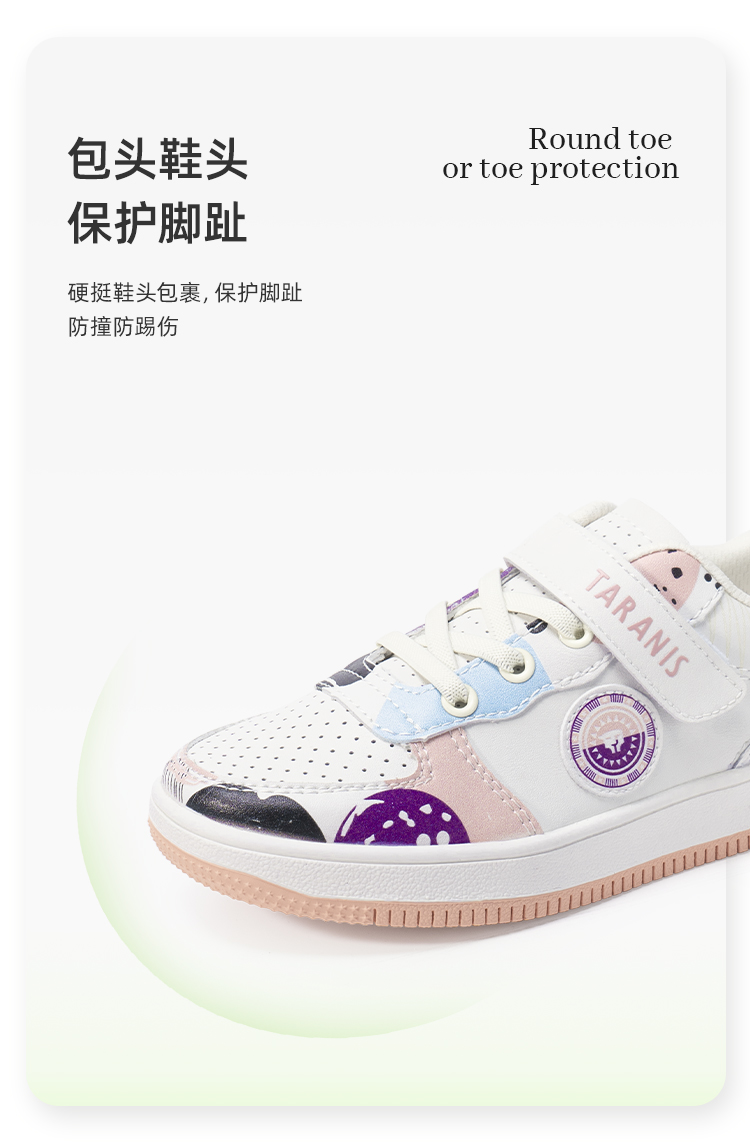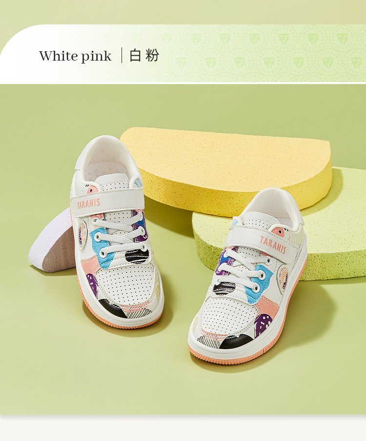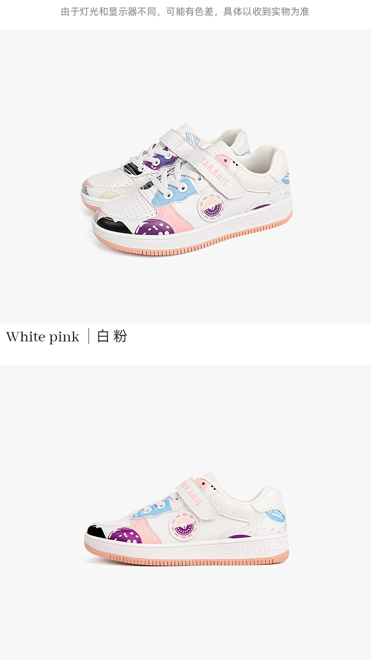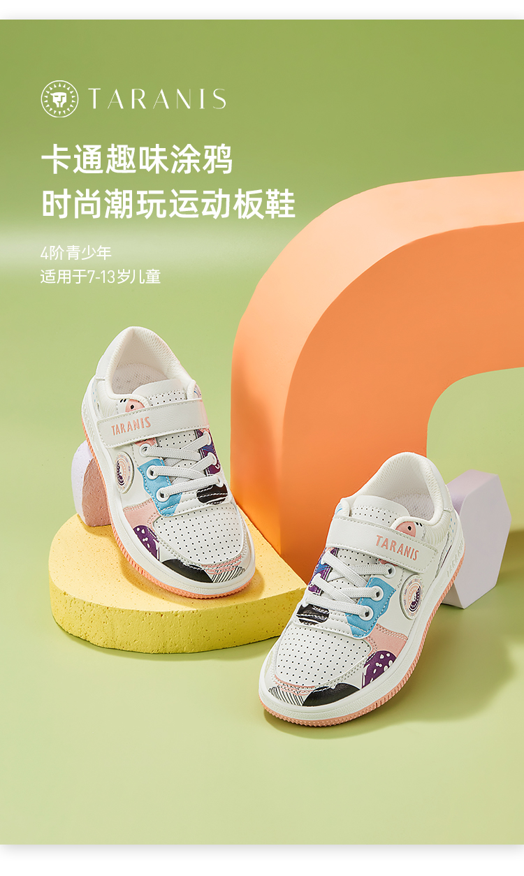 泰兰尼斯春季大童女童卡通涂鸦超纤运动板鞋T02D2A1842