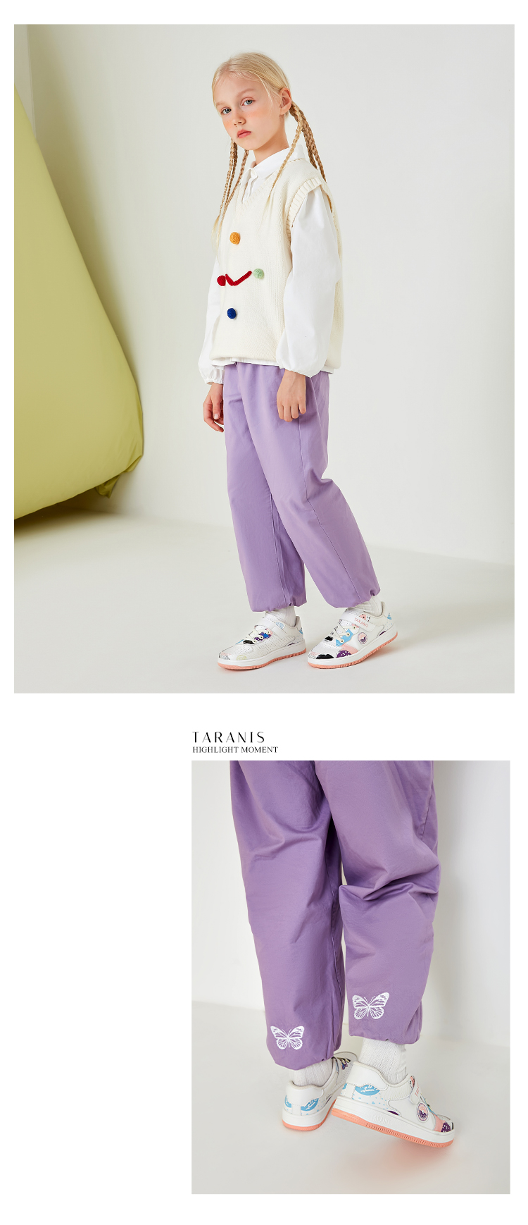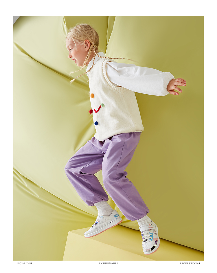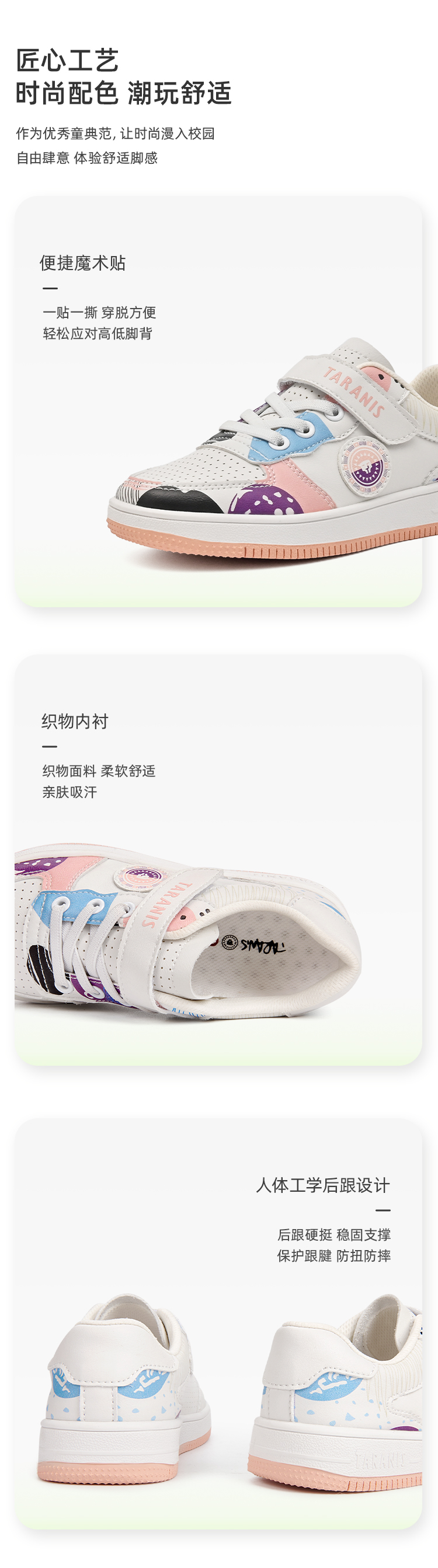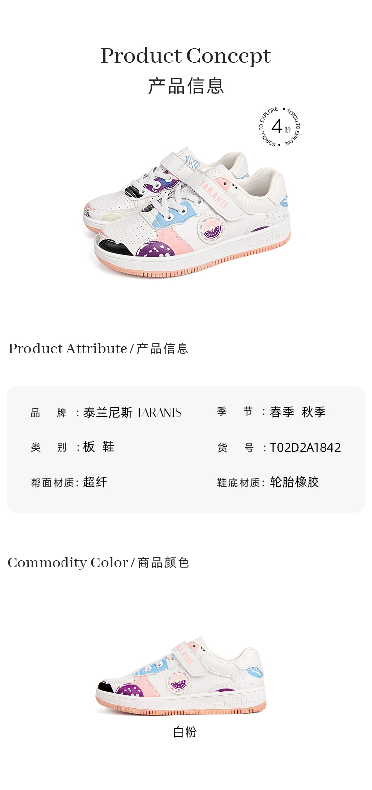 泰兰尼斯春季大童女童卡通涂鸦超纤运动板鞋T02D2A1842