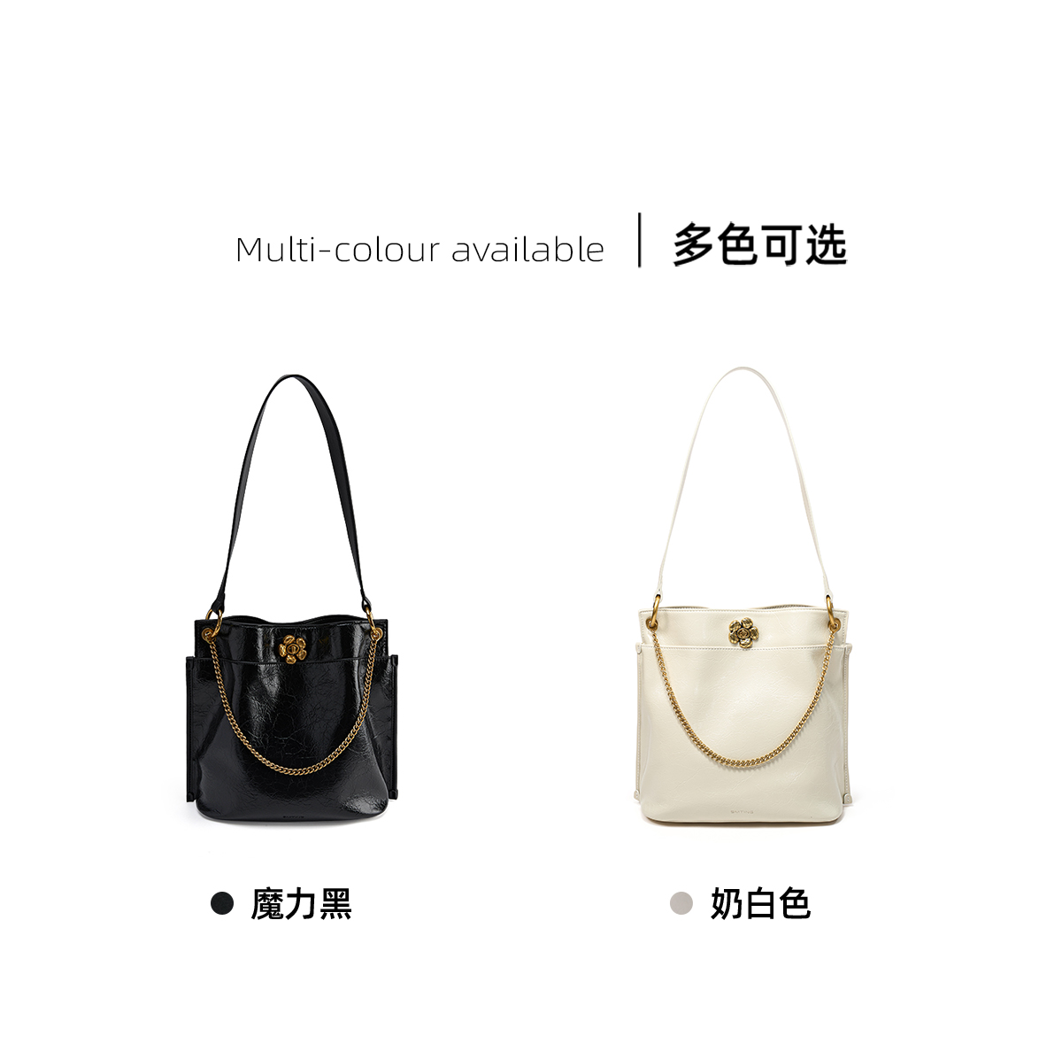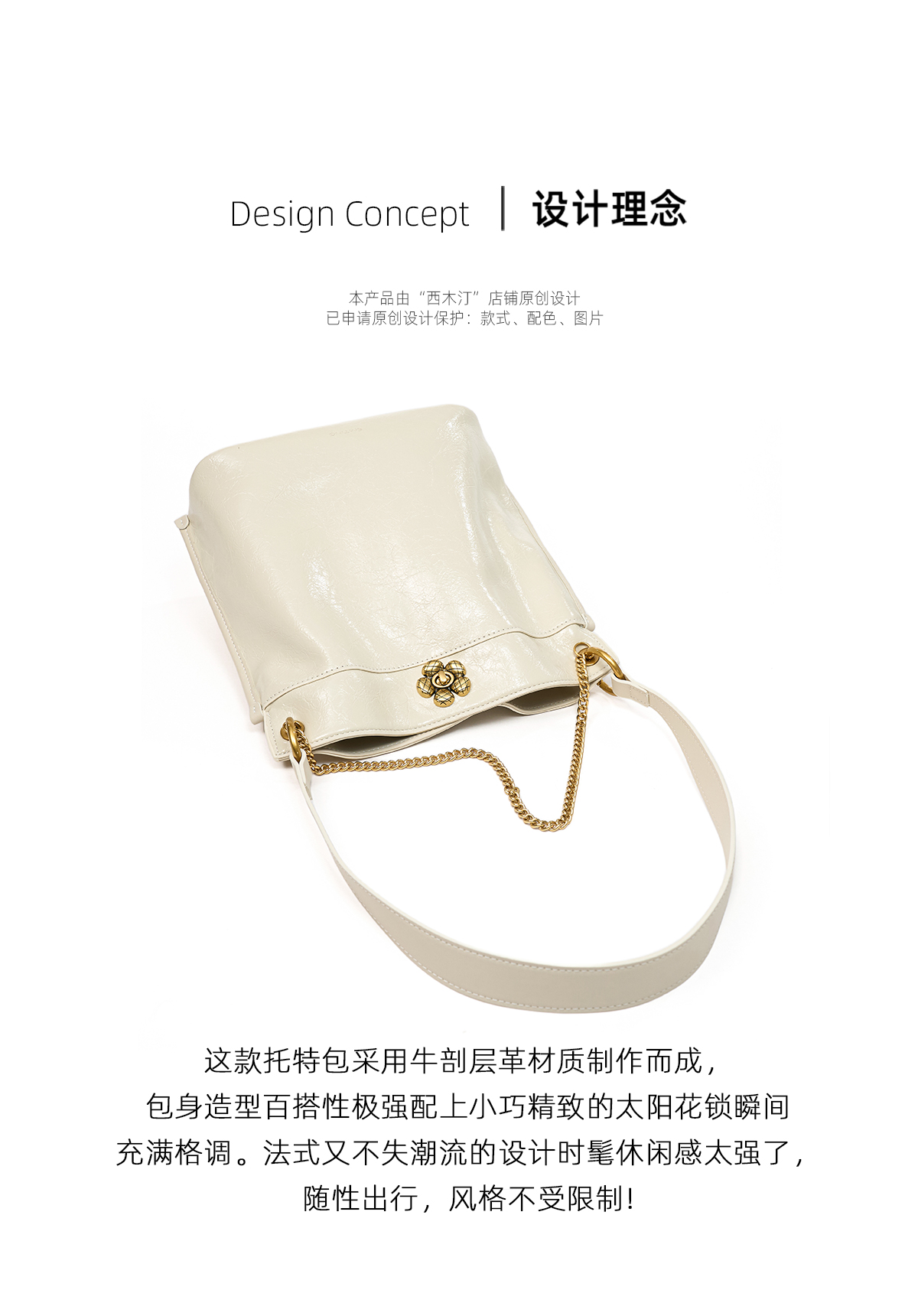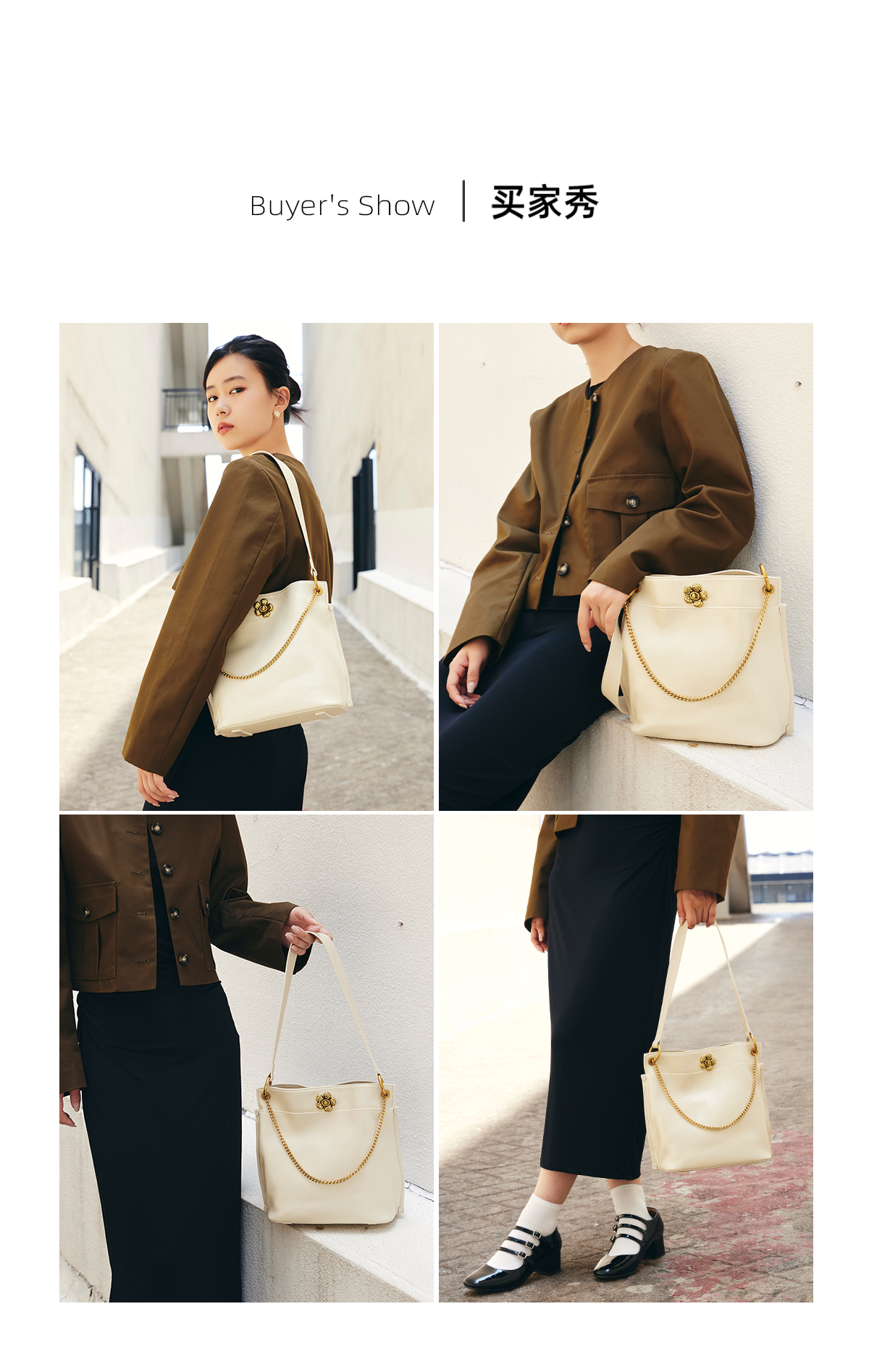 【柔见定制专属】【西木汀】 伊人夕岸 牛皮单肩水桶包女小众大容量斜挎包包3689