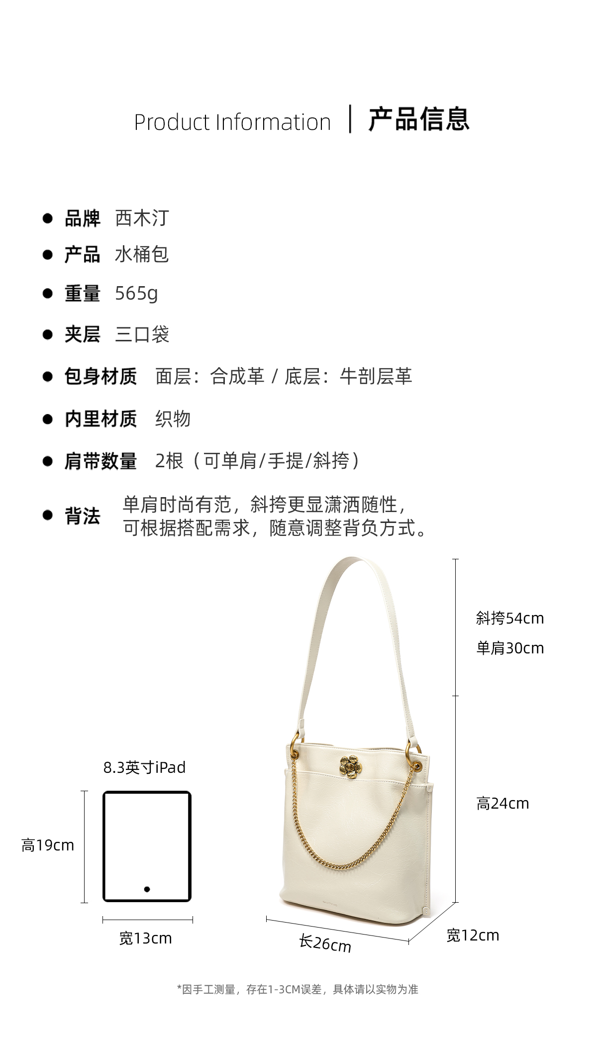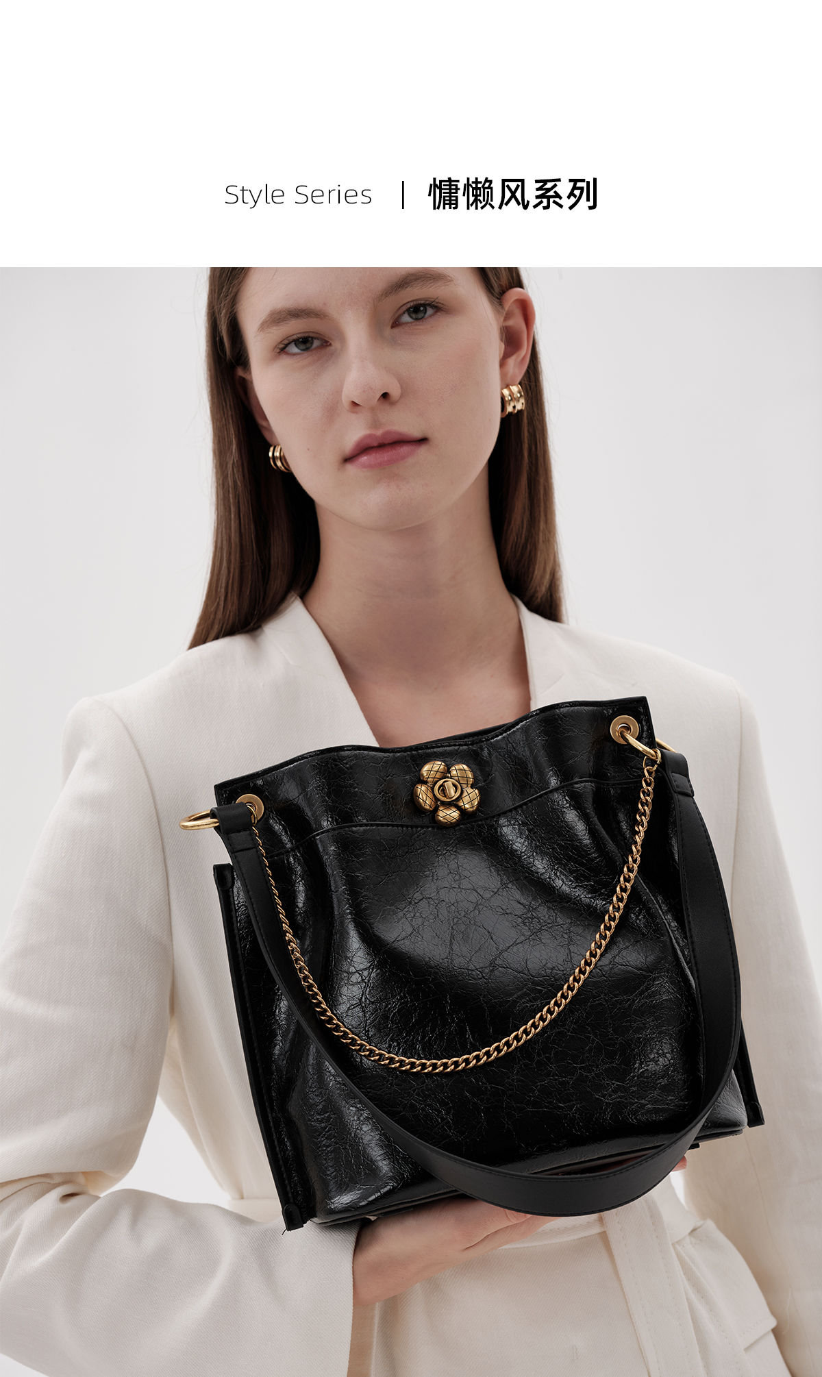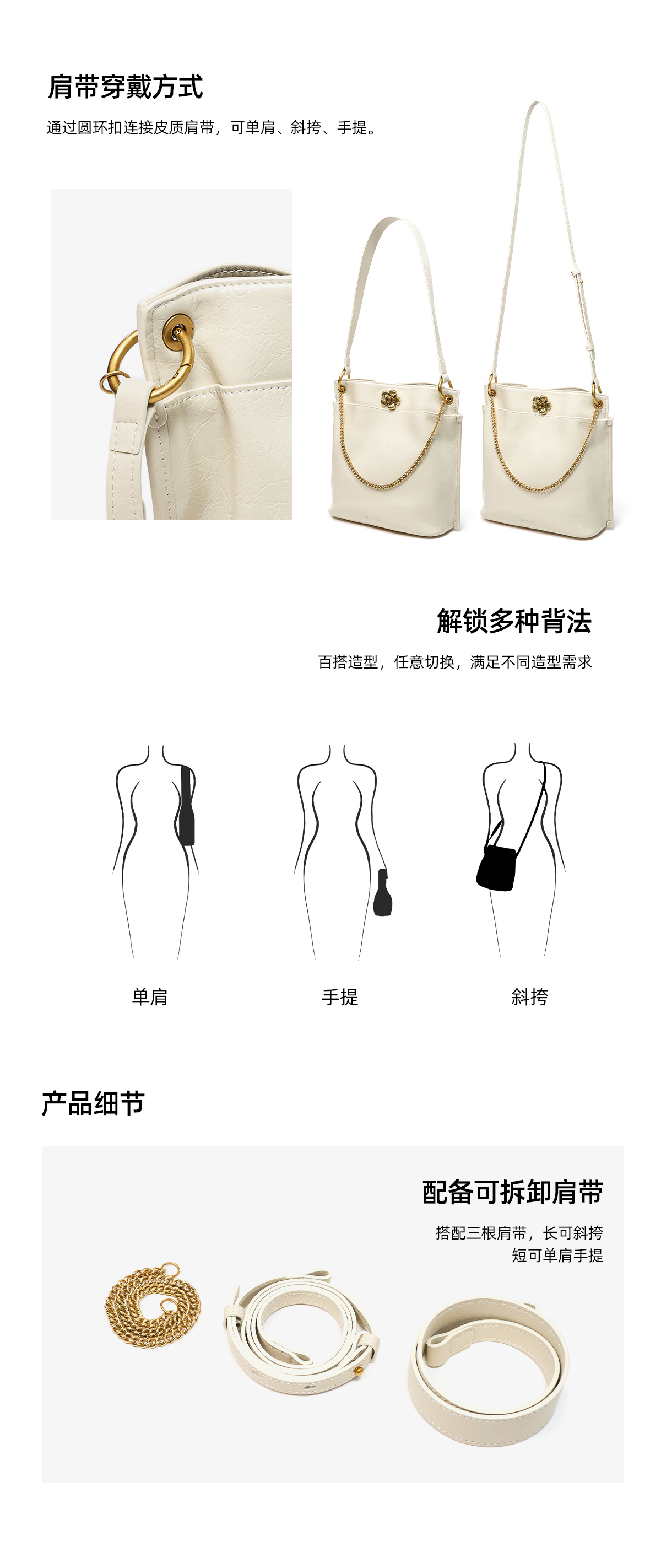 【柔见定制专属】【西木汀】 伊人夕岸 牛皮单肩水桶包女小众大容量斜挎包包3689