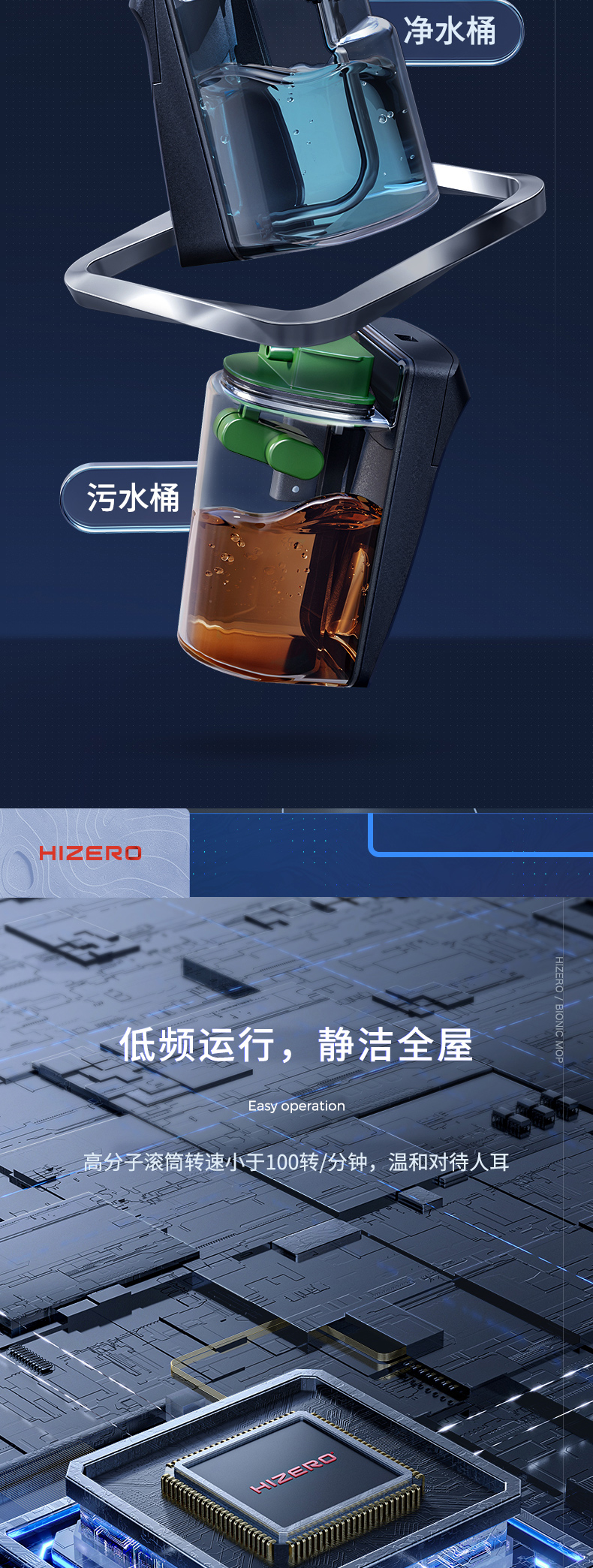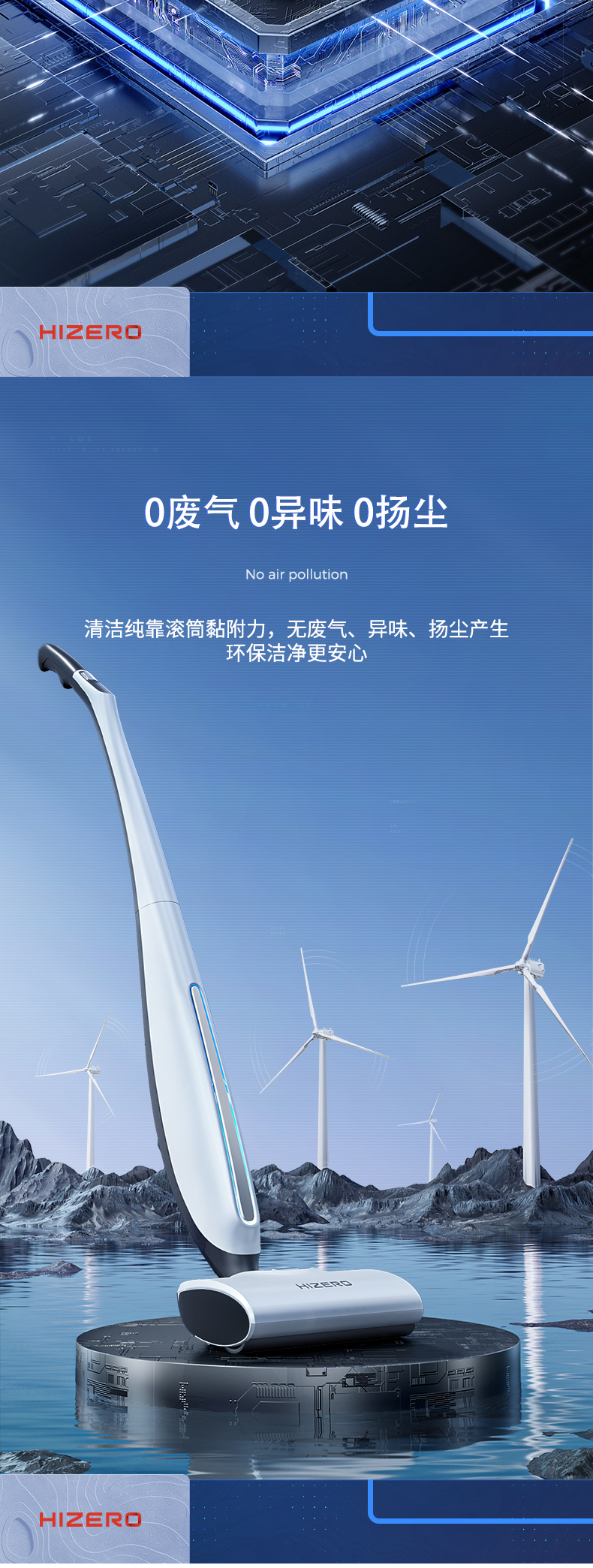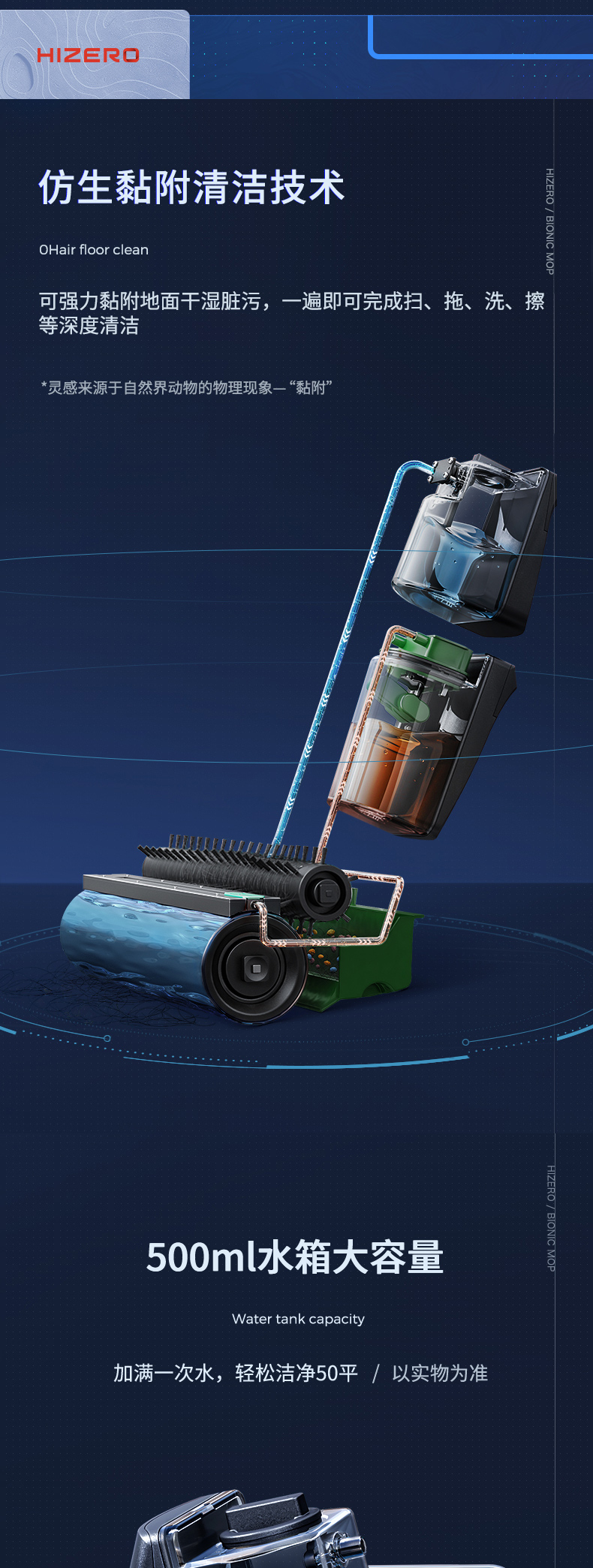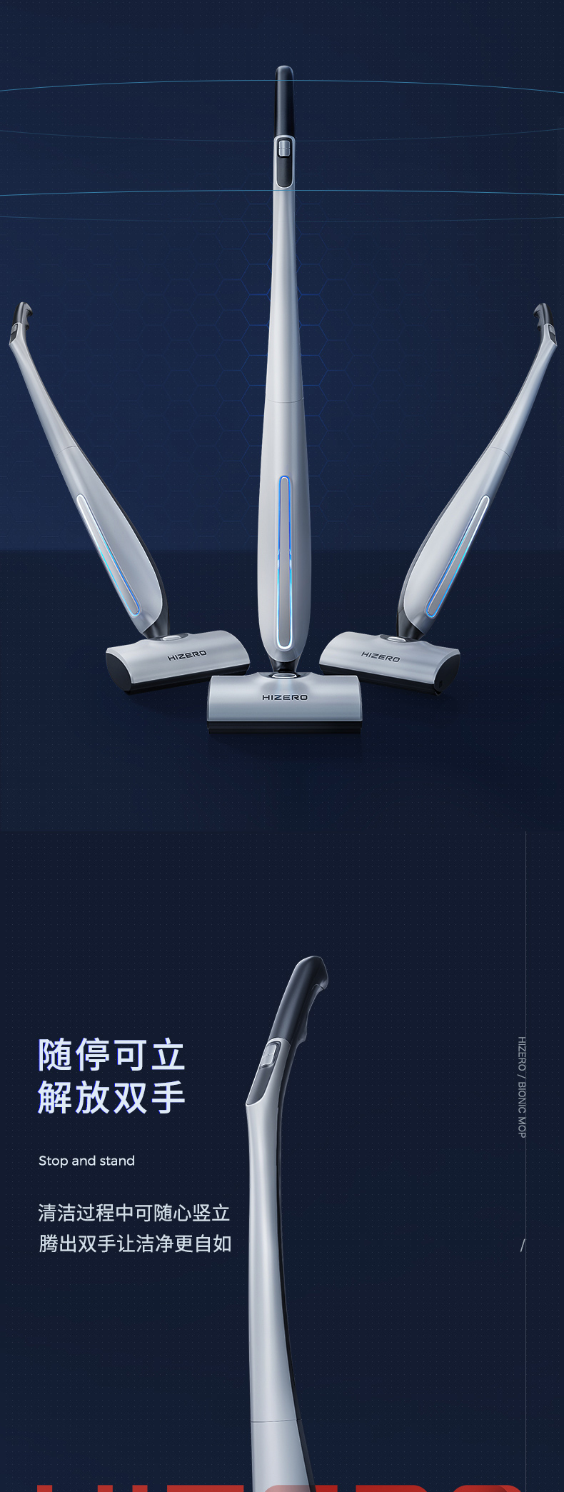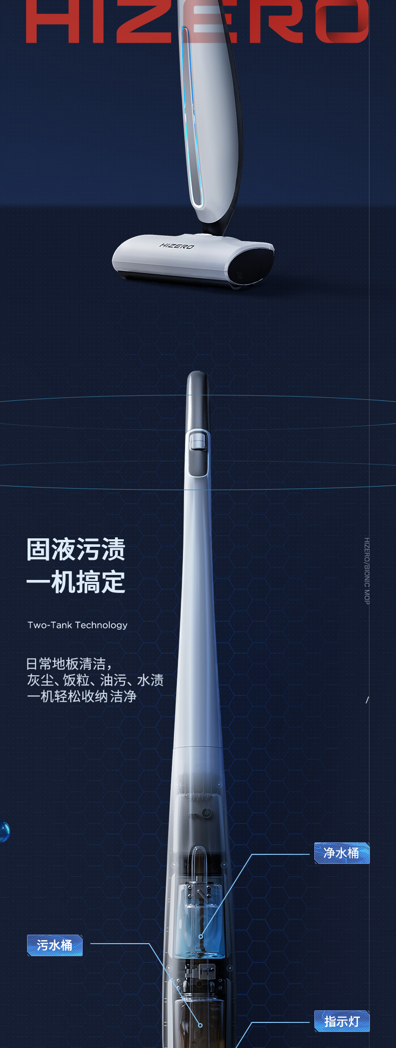 HIZERO手持仿生地板清洁机智能干湿分离家用吸尘拖地擦干自清洗无线拖地机