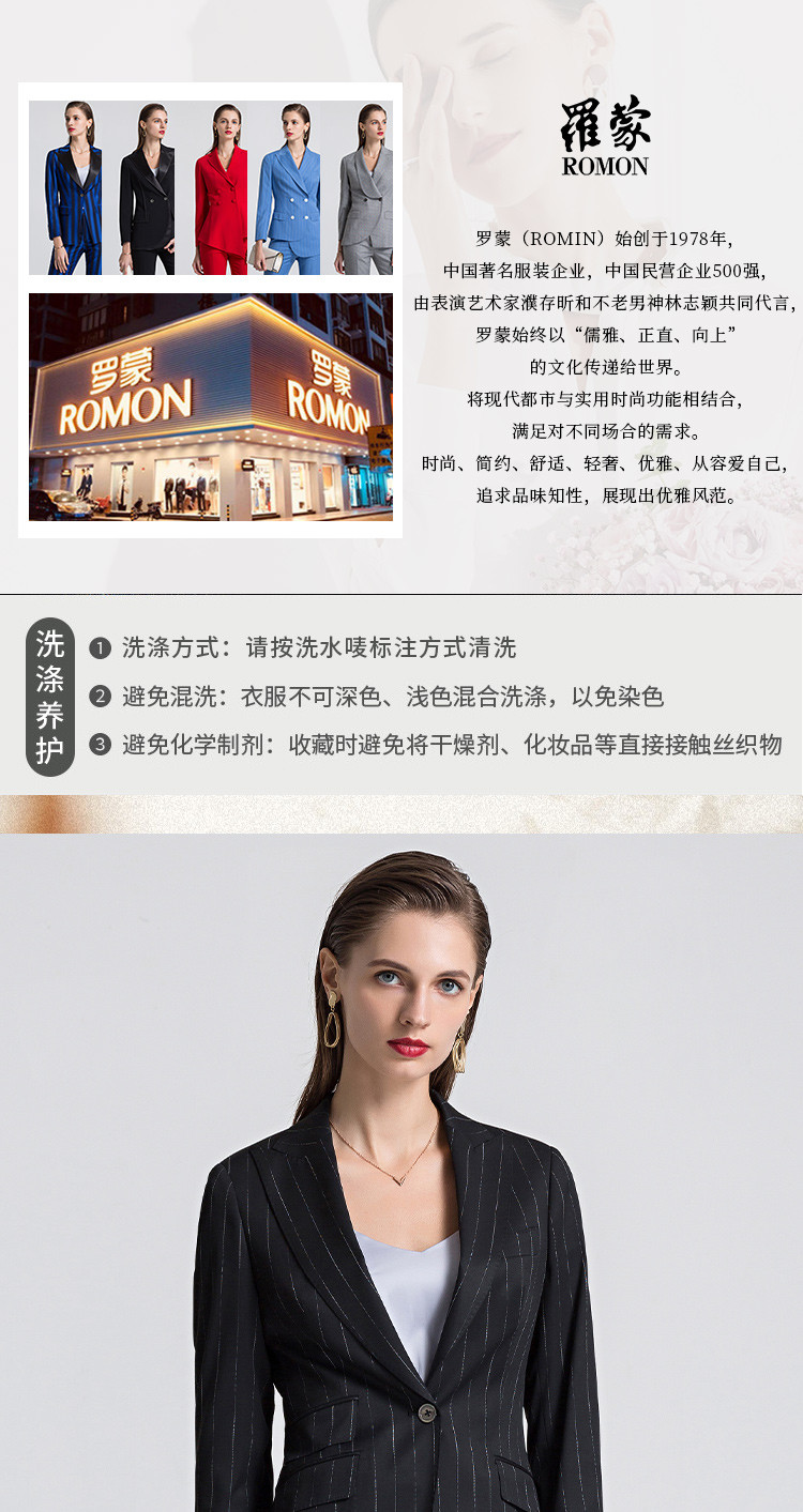 【上衣+裤子】罗蒙春季西服套装女士正装商务通勤修身显瘦条纹西装女