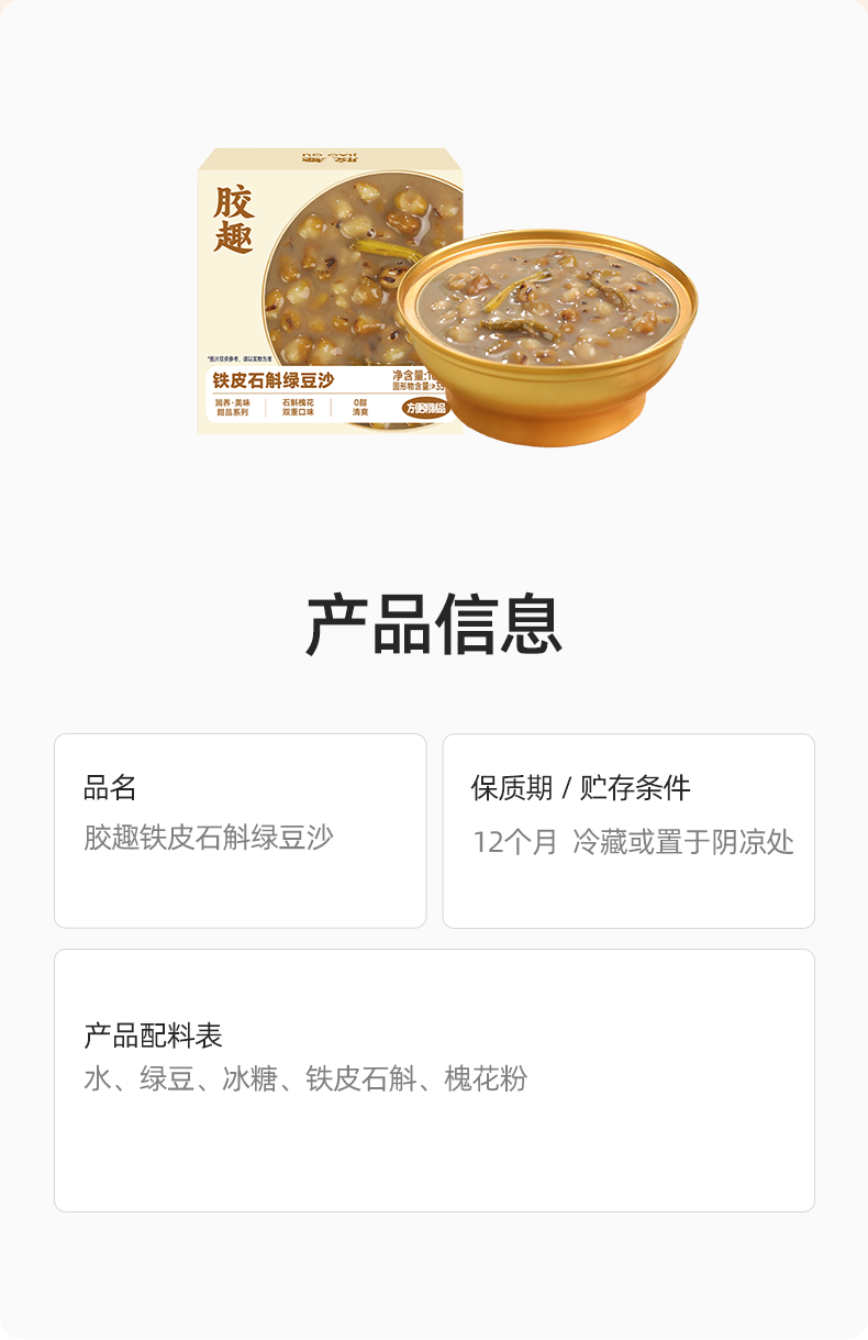 胶趣铁皮石斛绿豆沙 160g/碗 润养•美味 甜品系列【放心甄选】