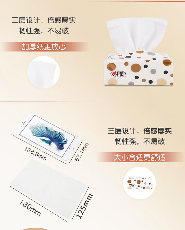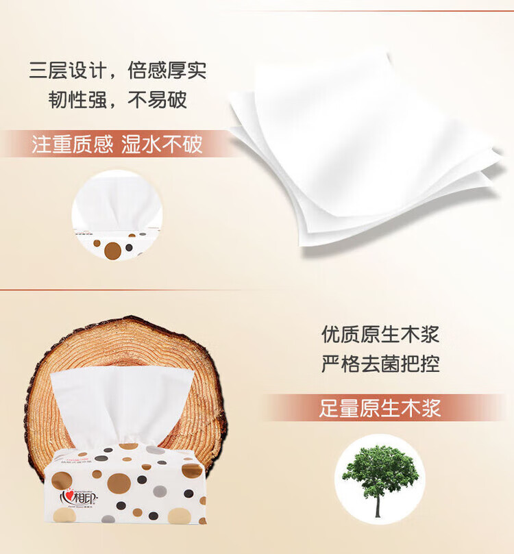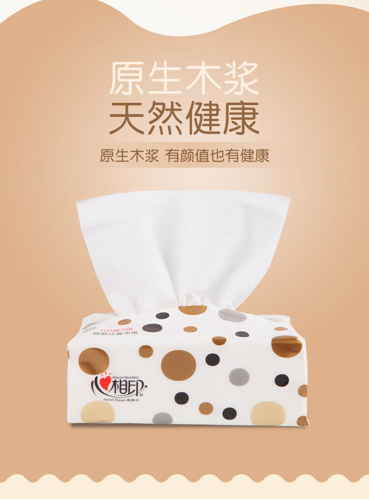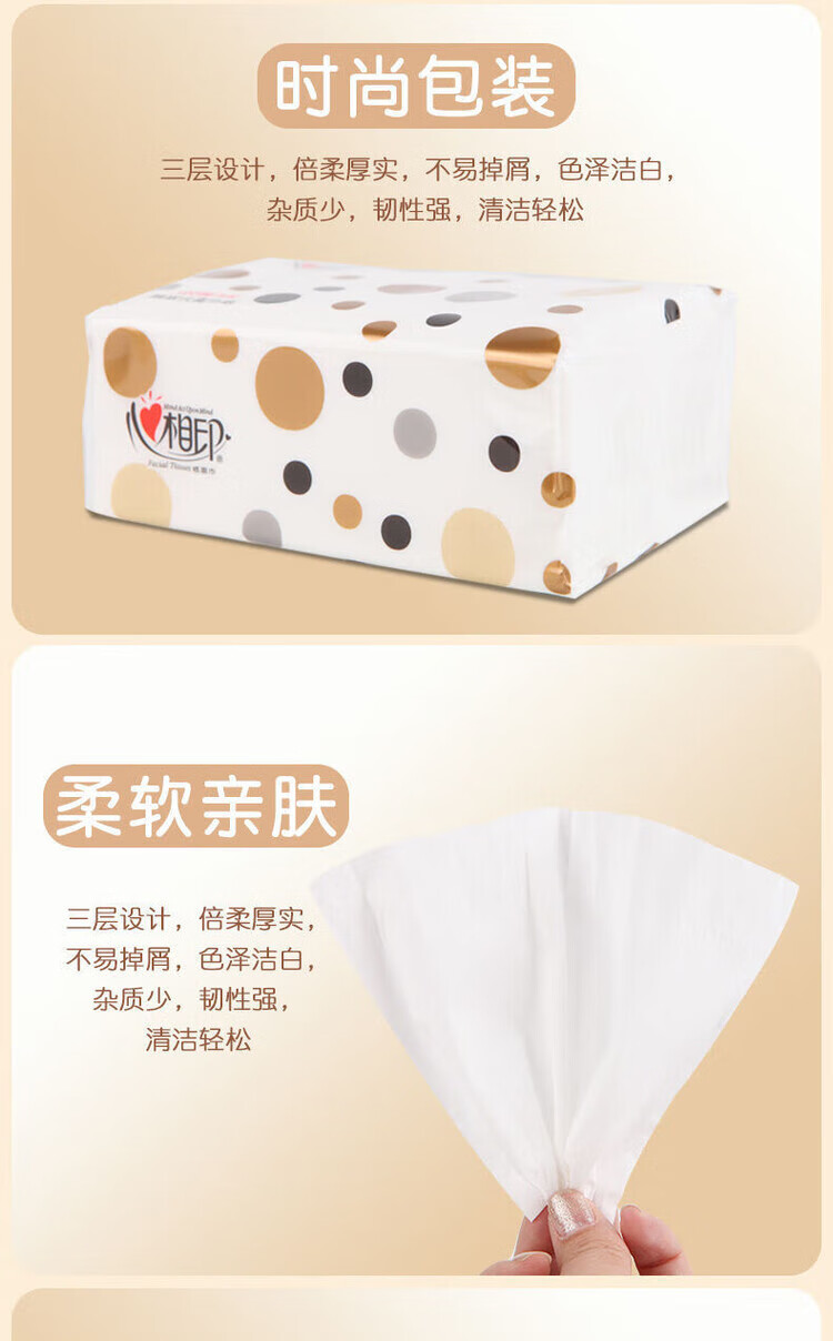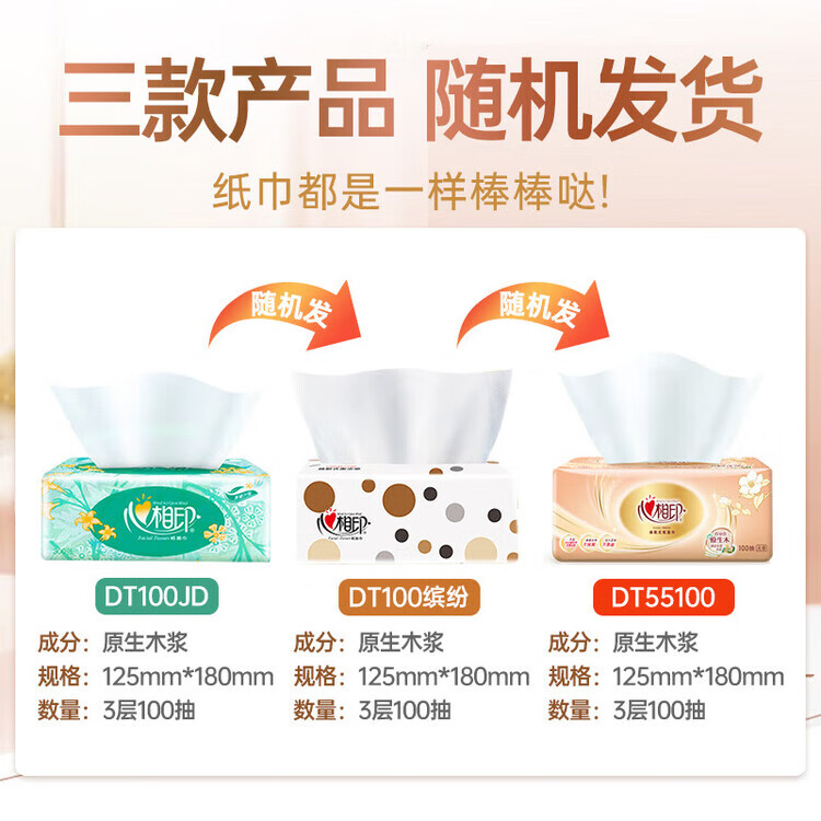 心相印抽纸巾缤纷3层100抽家用实惠装3包 原生木浆抽纸 天然健康 韧性强 湿水不破 卫生纸 面巾纸 柔软亲肤