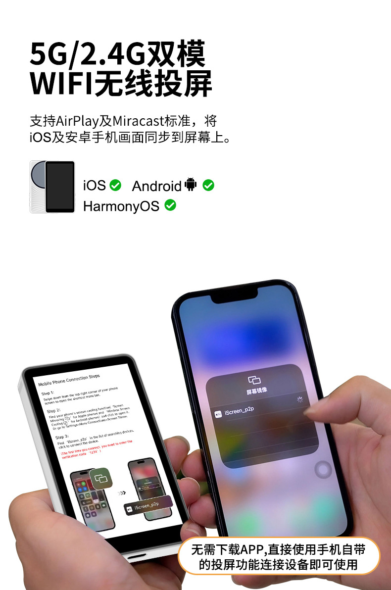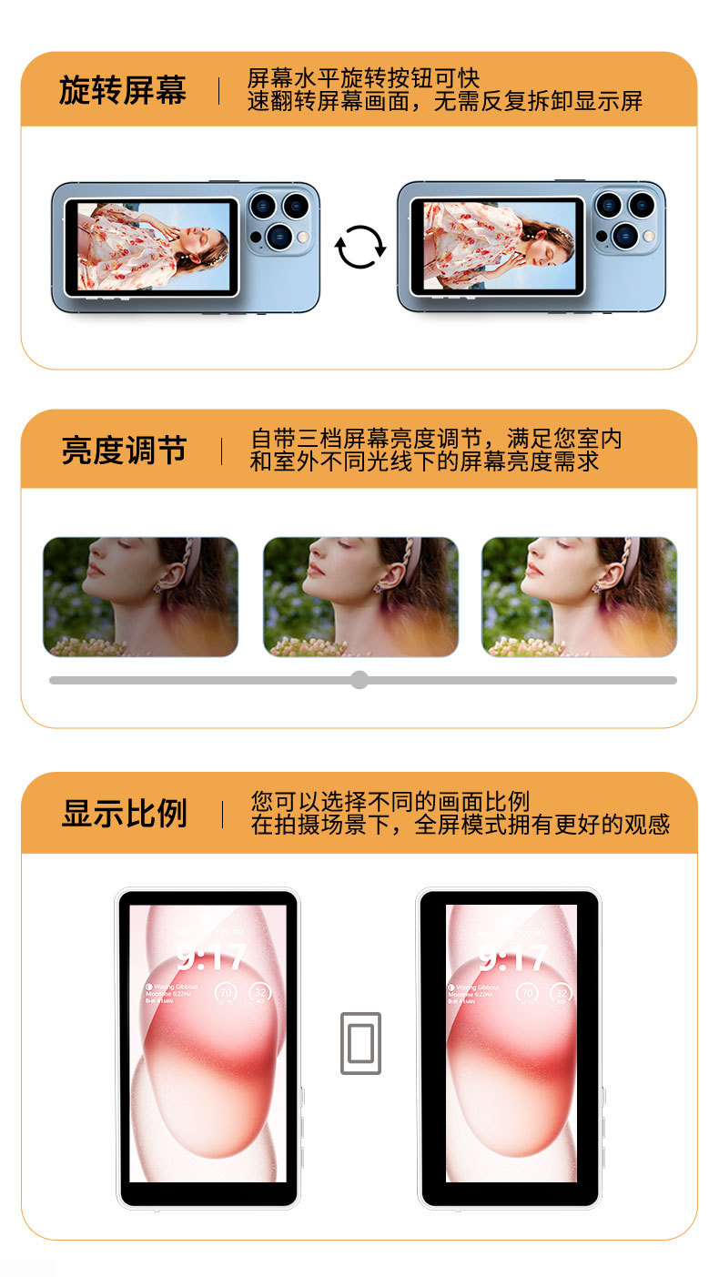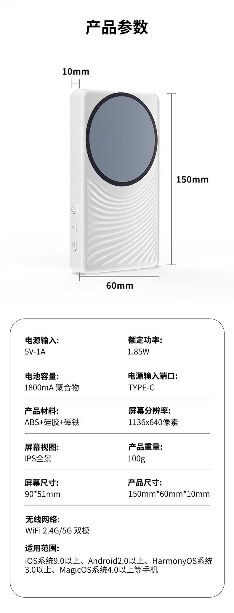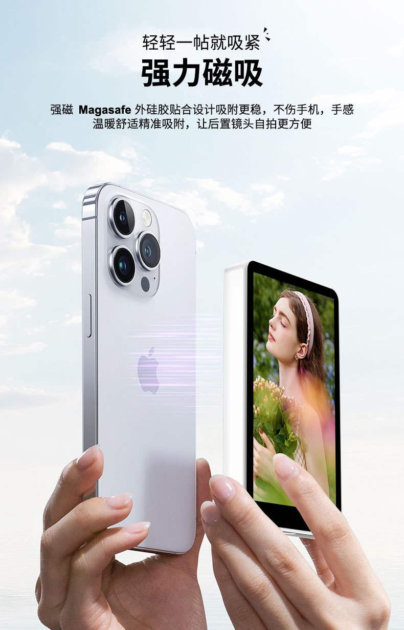 手机无线磁吸屏幕 手机后置自拍显示屏 无线磁吸网红直播拍摄 手机投屏同屏器 远程拍照