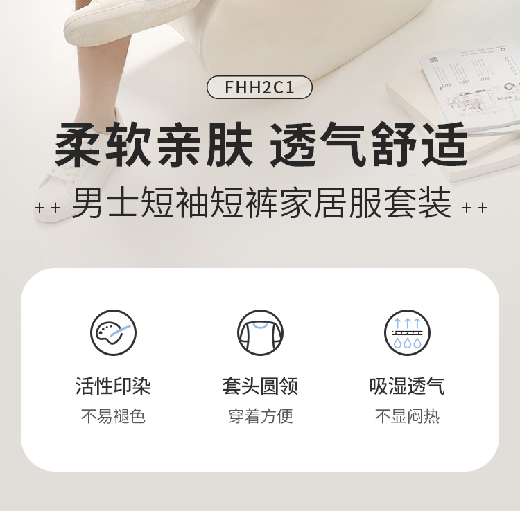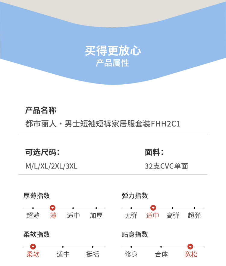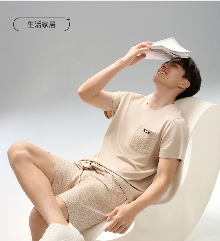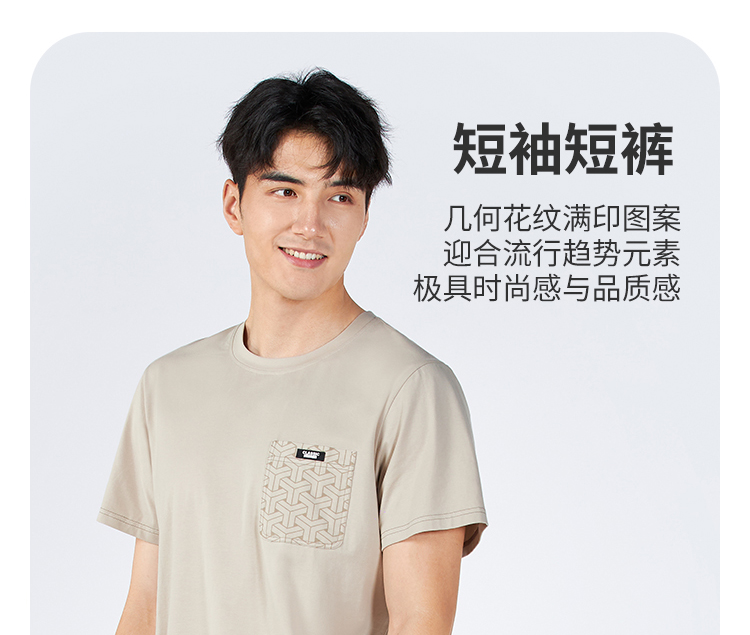 都市锋尚男士棉质短袖套装薄32支CVC单面生活家居无短袖类FHH2C1