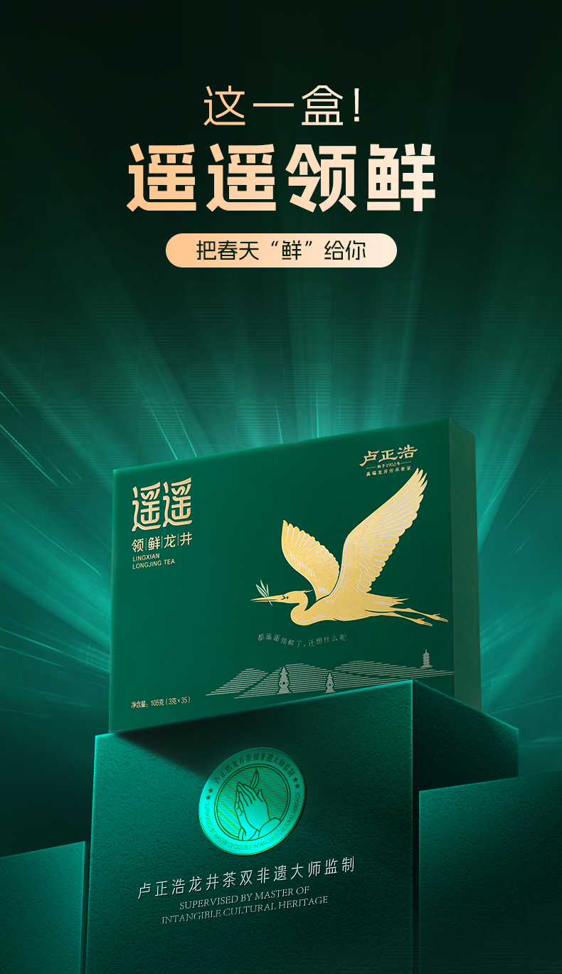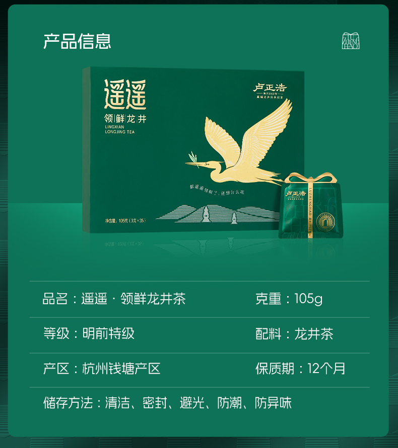 【2026年新茶】卢正浩明前特级头采龙井遥遥领鲜105克礼盒绿茶茶叶