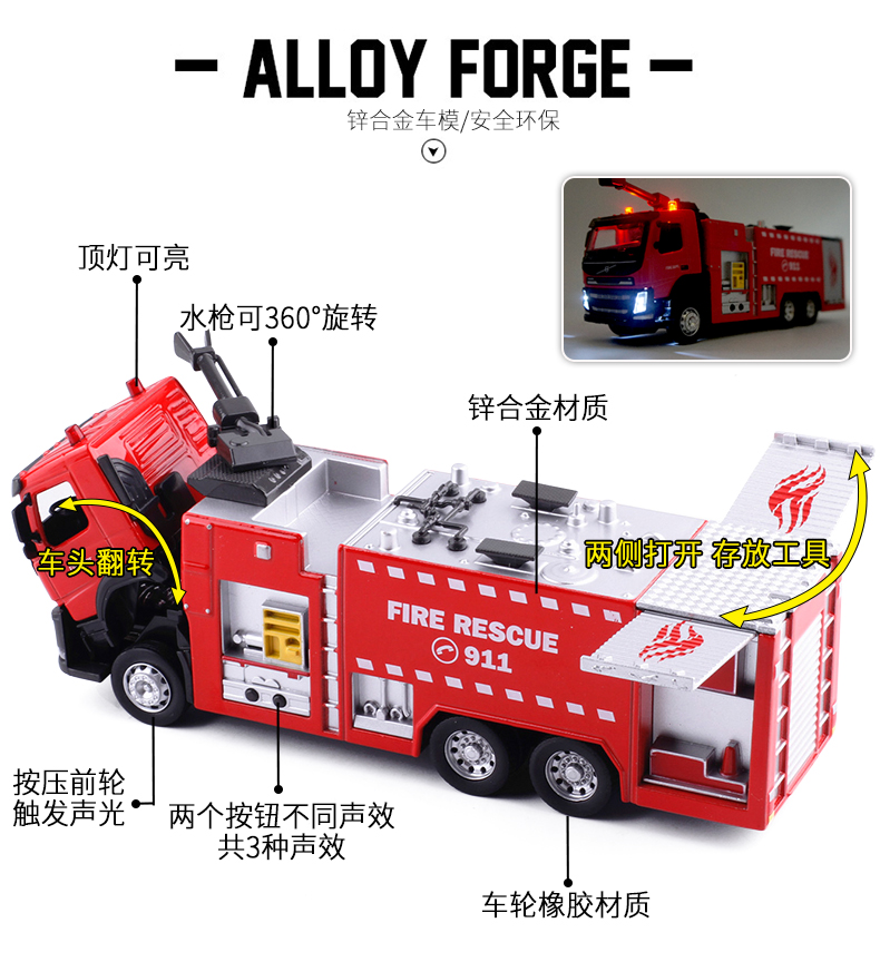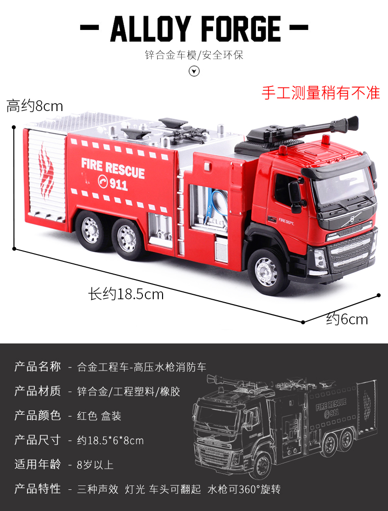 【城市英雄】1:50沃尔沃高压水枪消防车