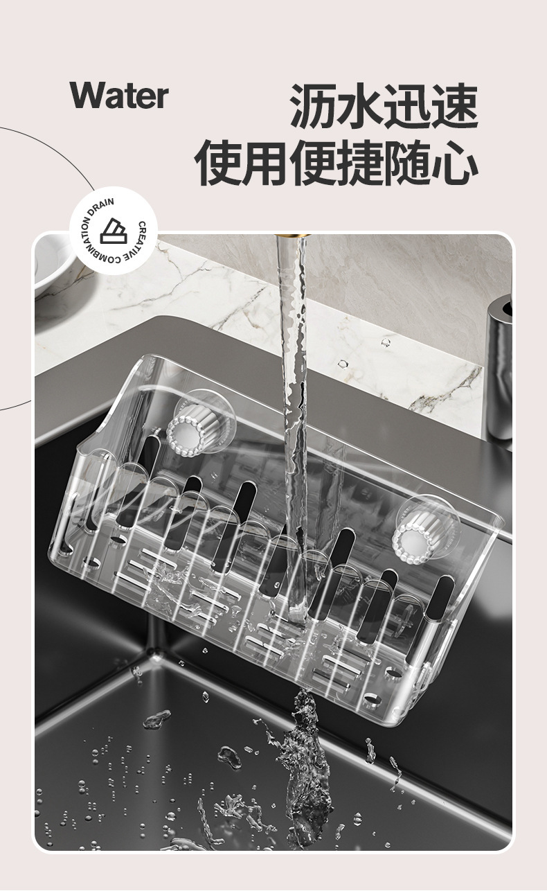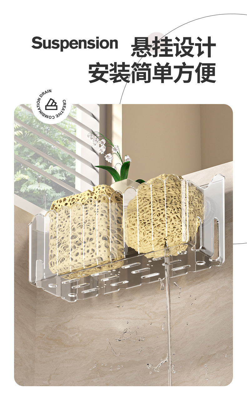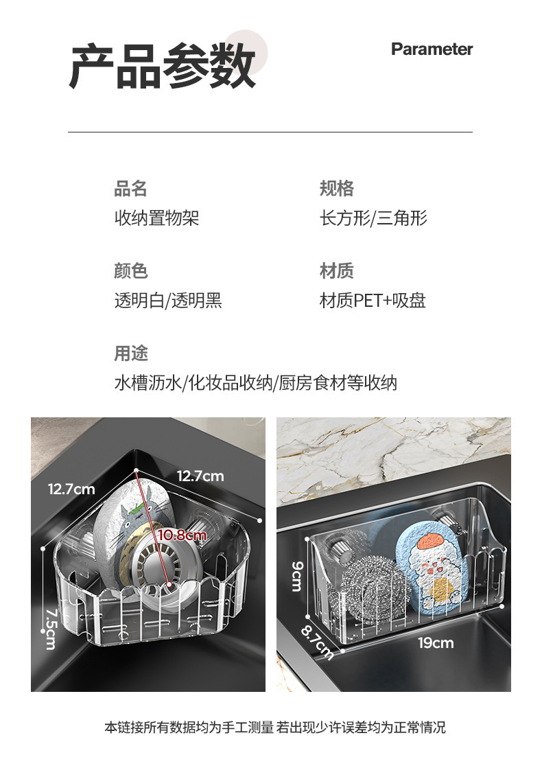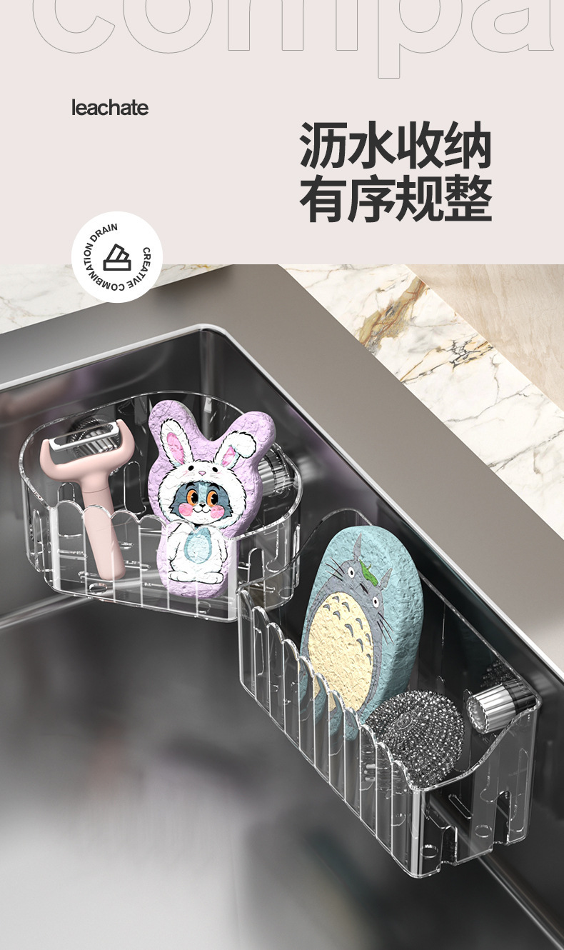 卫生间化妆品吸盘置物架水槽内收纳篮壁挂抹布沥水架子免打孔储物