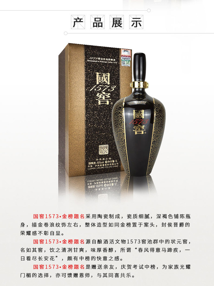 【泸州老窖酒名堂】55度 国窖1573生命中的那坛酒009/1L