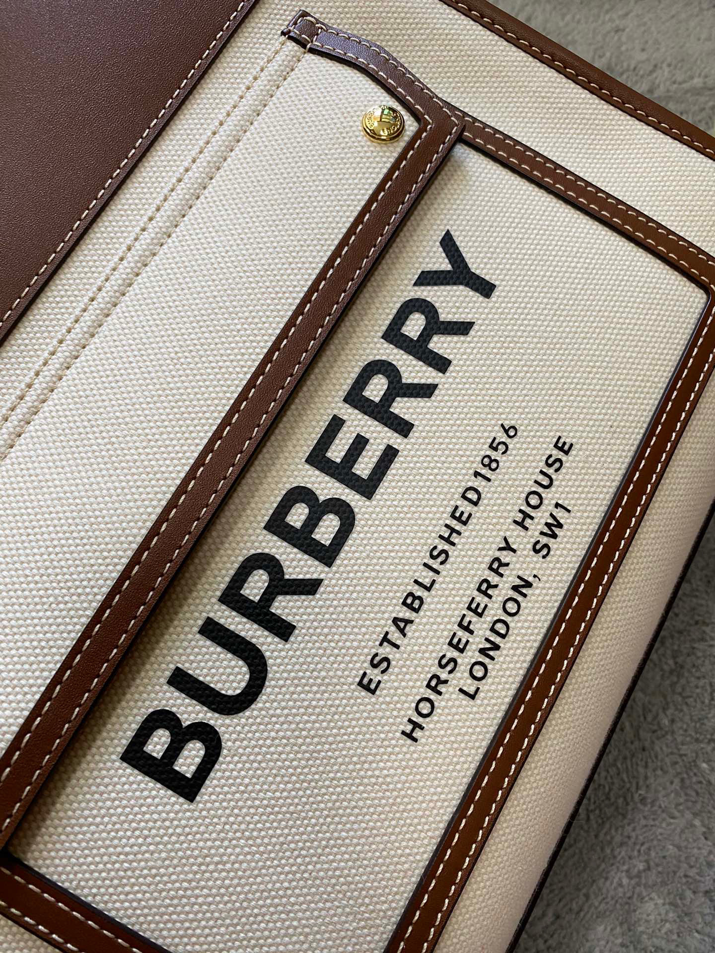 B家典藏灵感的拉链托特包,精选帆布拼缉明线皮革制成,正面口袋装饰品牌 Horseferry 印花。可使用加固式顶部提柄手拎,或使用可拆式肩背带携带。31 x 12 x 29.5cm