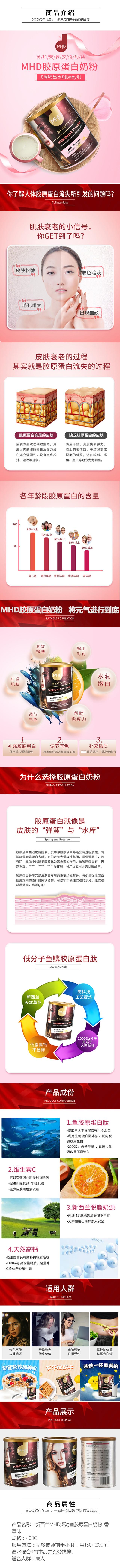 【7.2 抄底囤货】新西兰MHD深海鱼胶原蛋白奶粉 香草味 400G*2