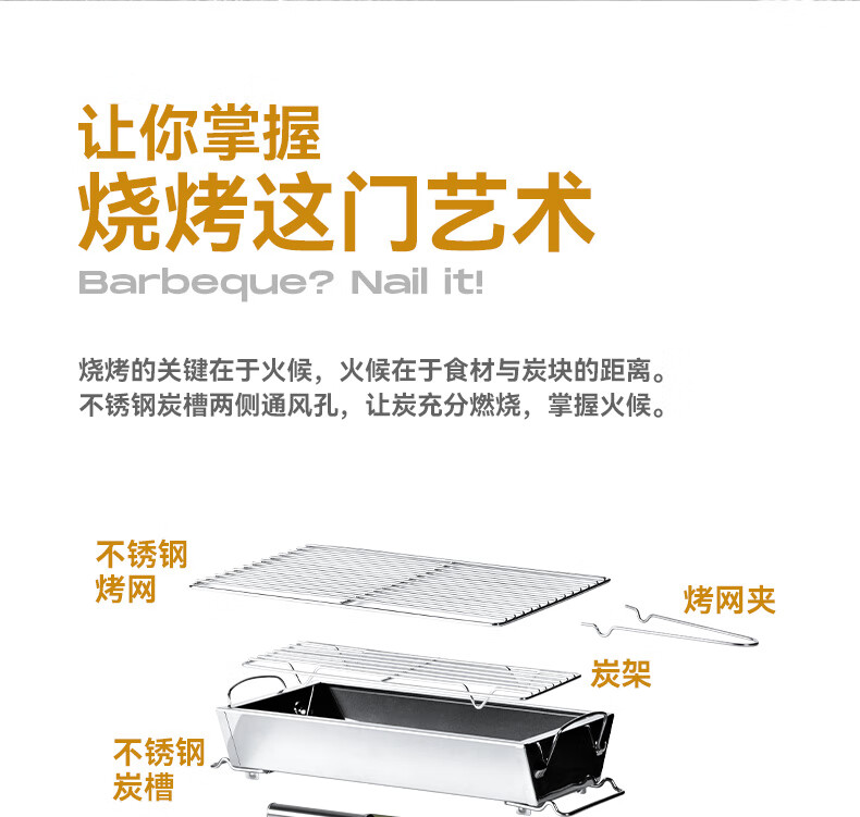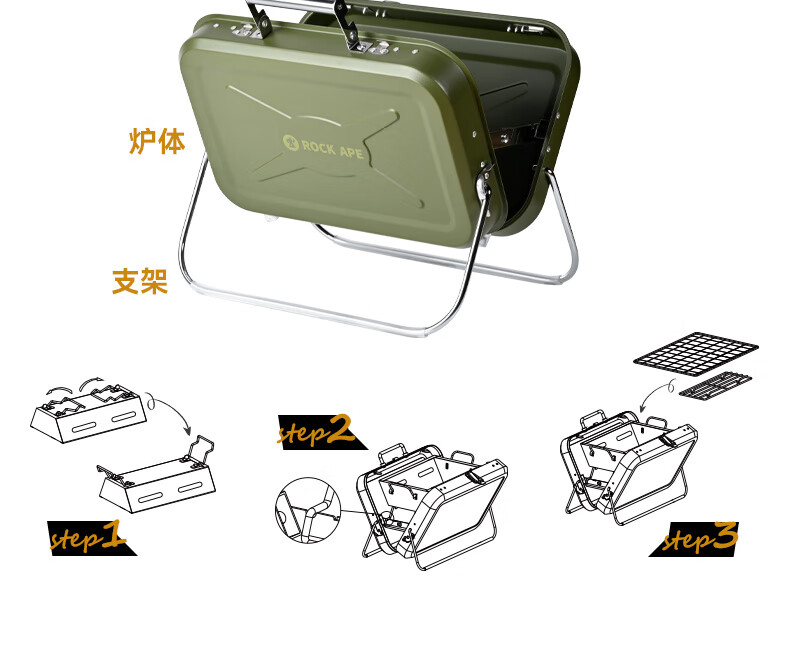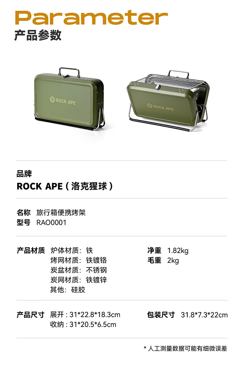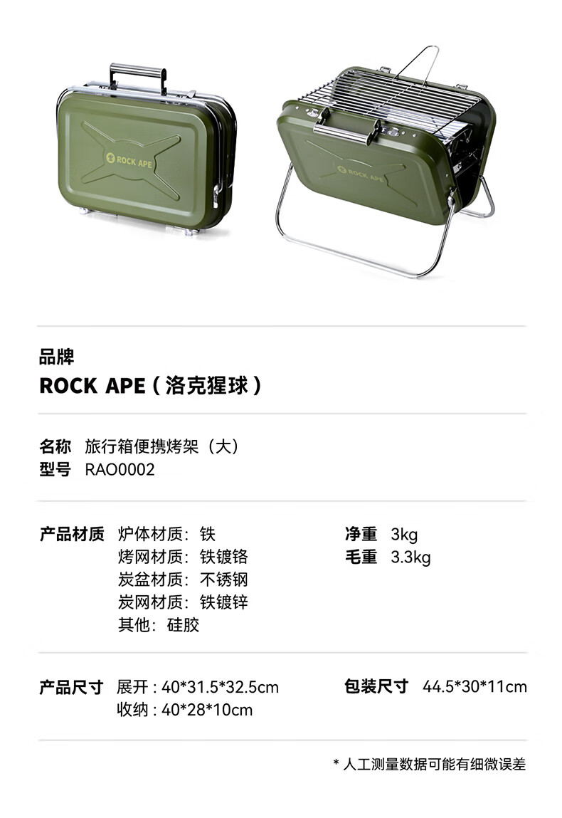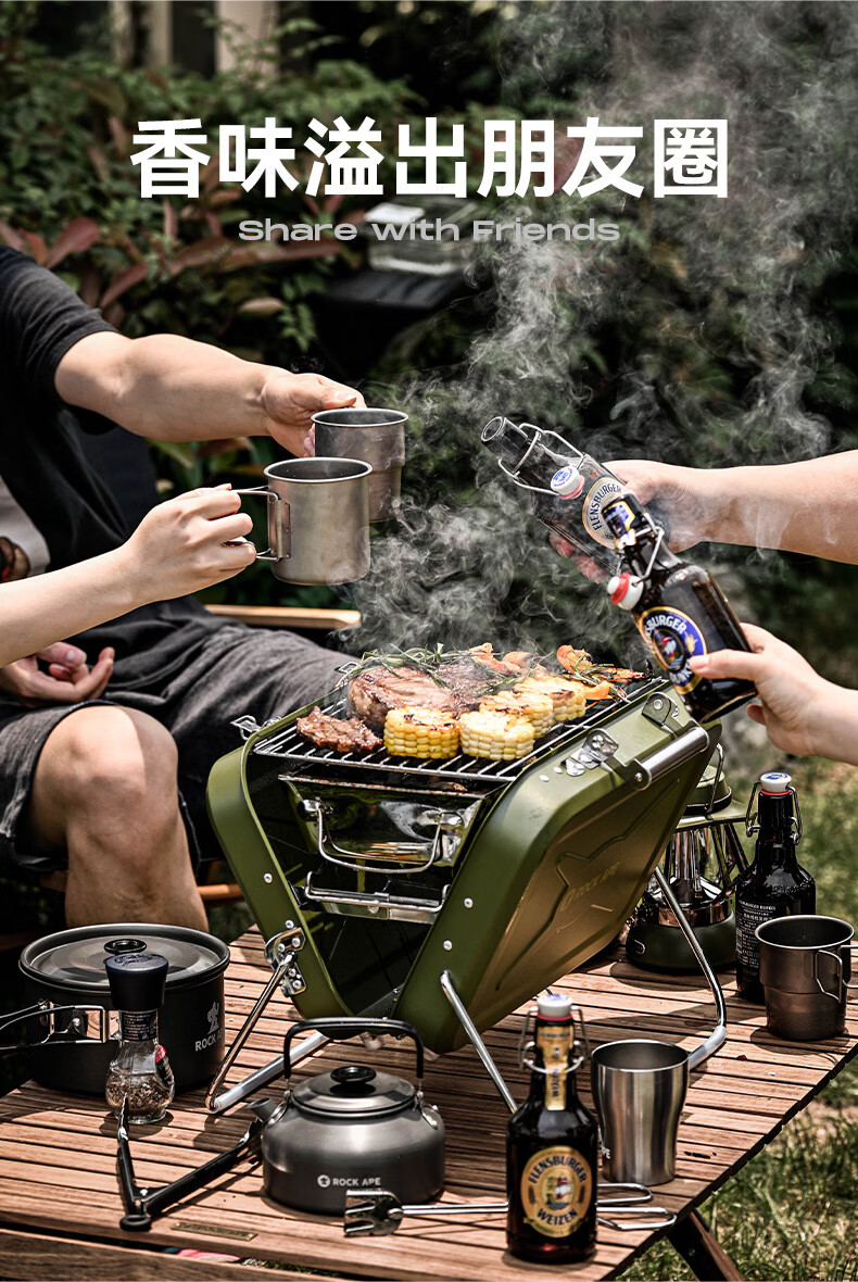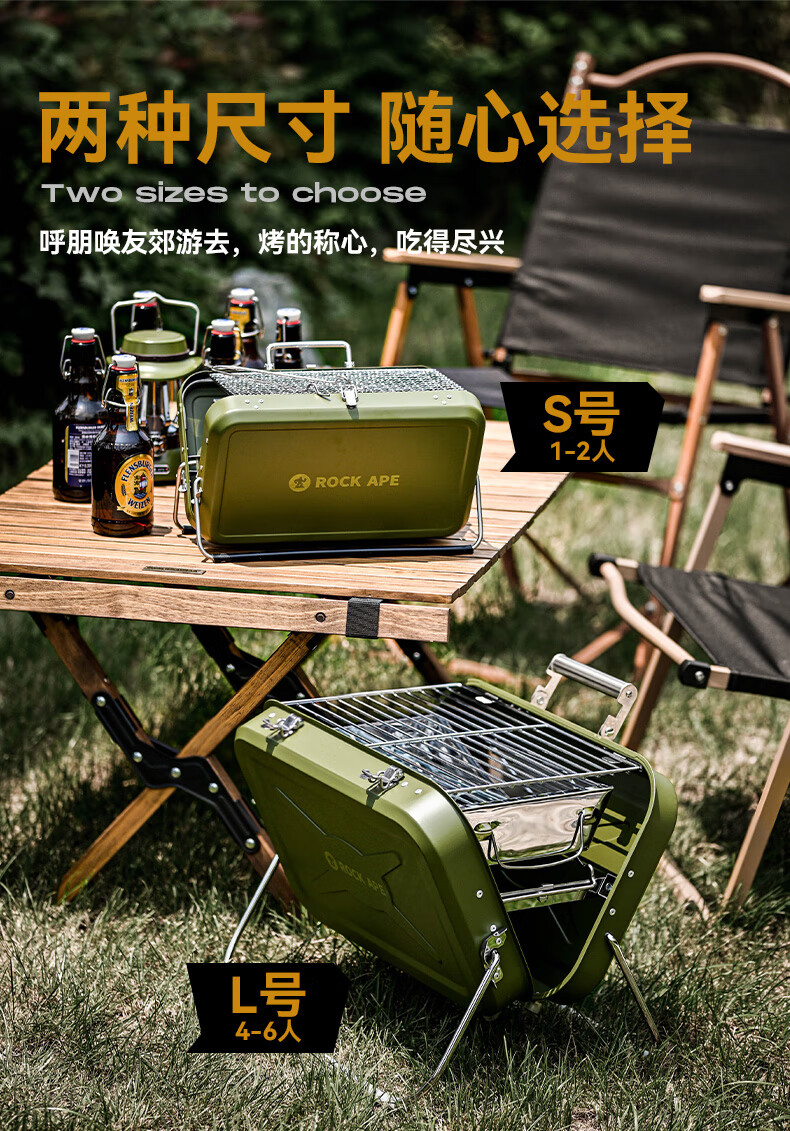 【户外便携烤架】洛克猩球 RockApe 公文包便携烤箱户外炉具自驾野营野餐用品烧烤露营装备 小号