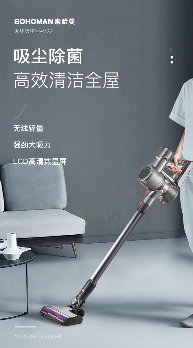 【自营】索哈曼SOHOMAN 大吸力无线手持吸尘器V22