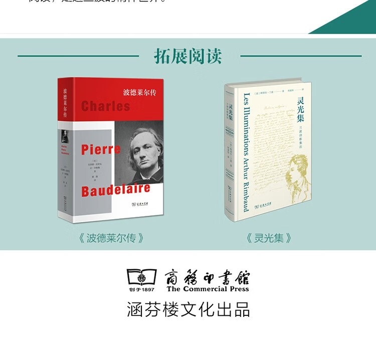 全书采用布面精装,选取精致的蓝绿色调,每本书都附赠藏书票一张,图片采自兰波生前好友卡尔扎斯1897年为《灵光集》所绘的漫画《兰波被光照亮》,极具收藏价值,是不容错过、图文并茂、内容丰富严谨的兰波传记。