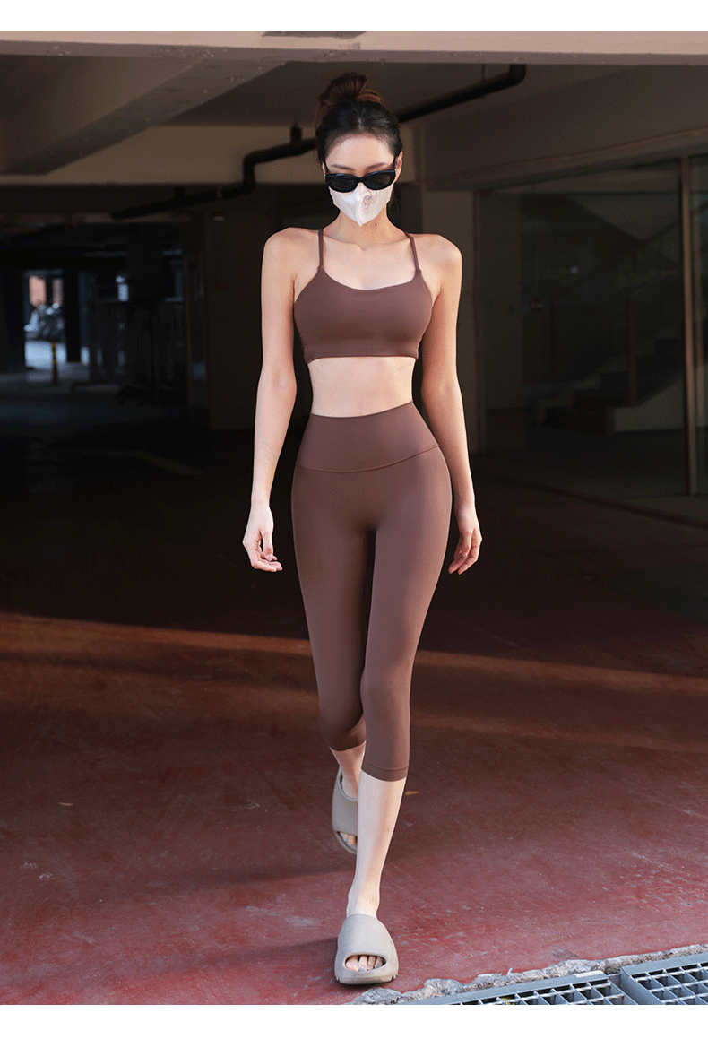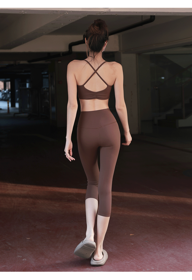 beemen 舒适裸感 高腰提臀瑜伽健身裤紧身速干外穿七分裤 小个子紧身裤