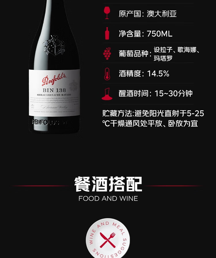 【直选好酒】奔富BIN138干红葡萄酒750ml单支