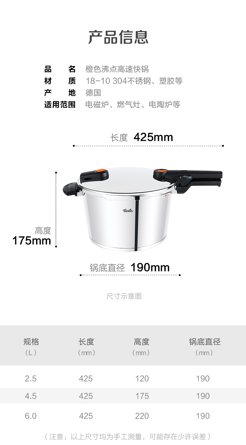 (样品特惠)德国菲仕乐Fissler沸点进口高速快锅压力锅高压锅4.5L