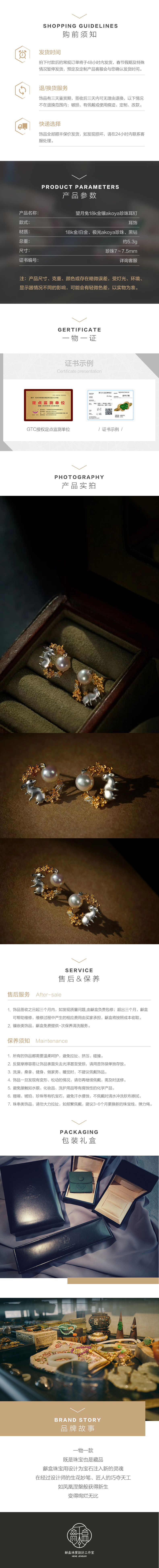 龢盒原创 望月兔18k金镶akoya珍珠耳钉
