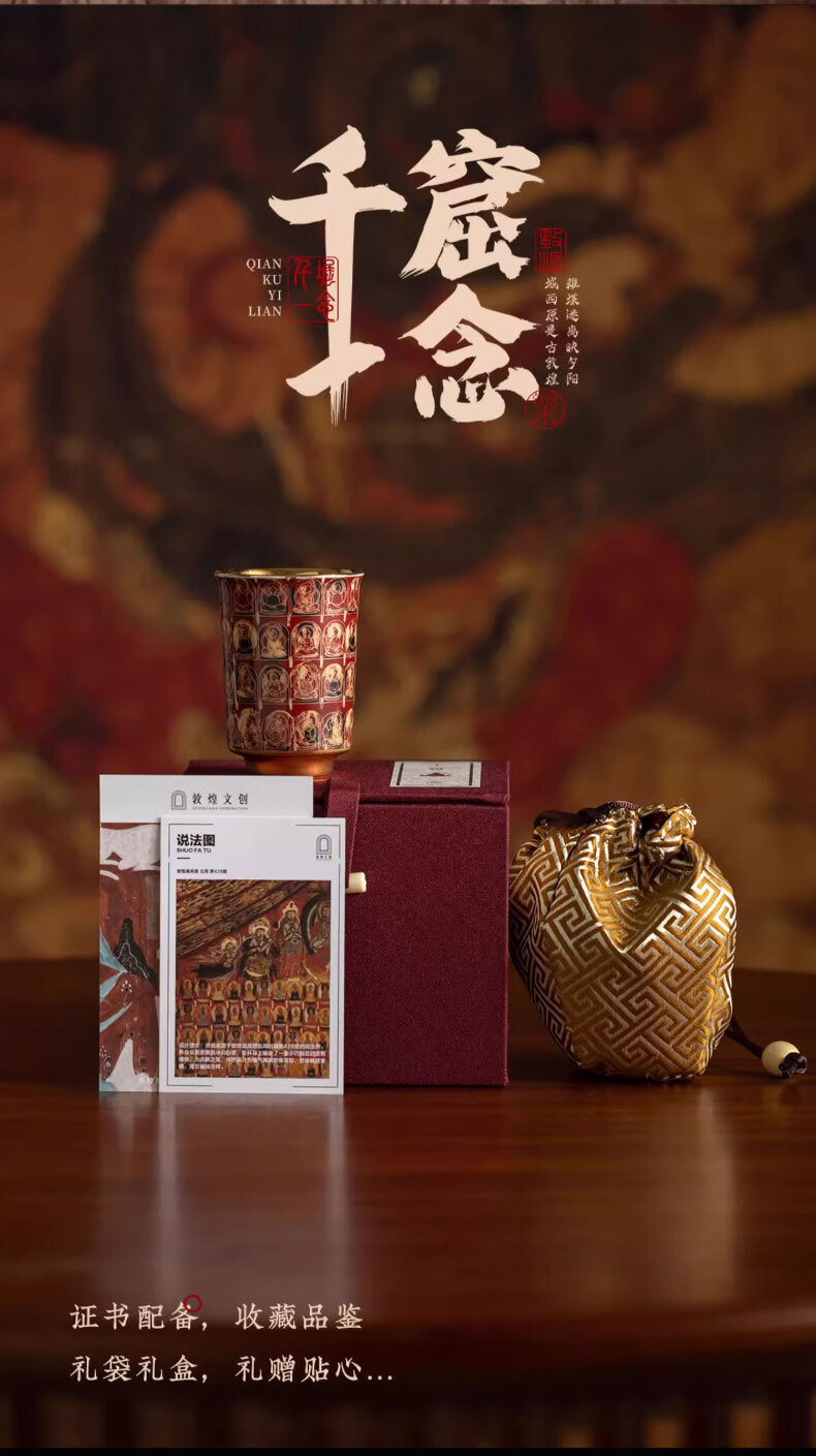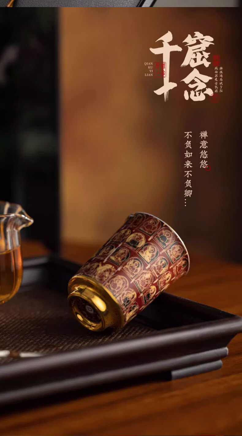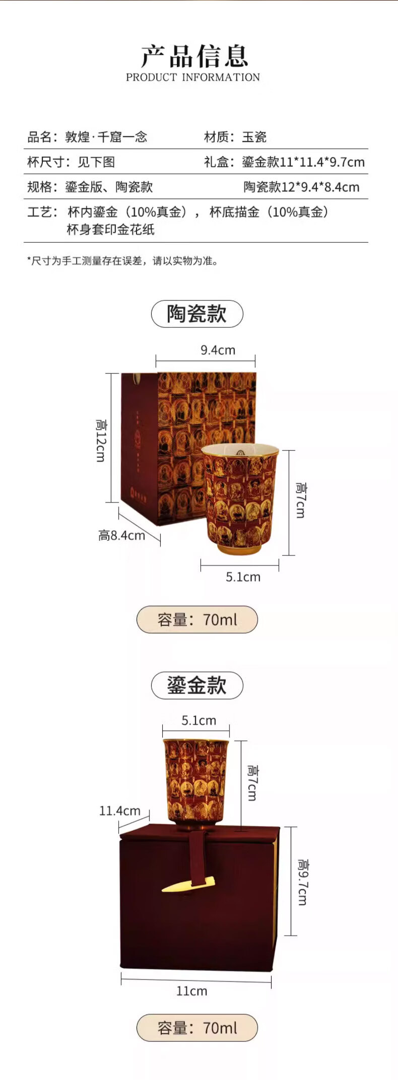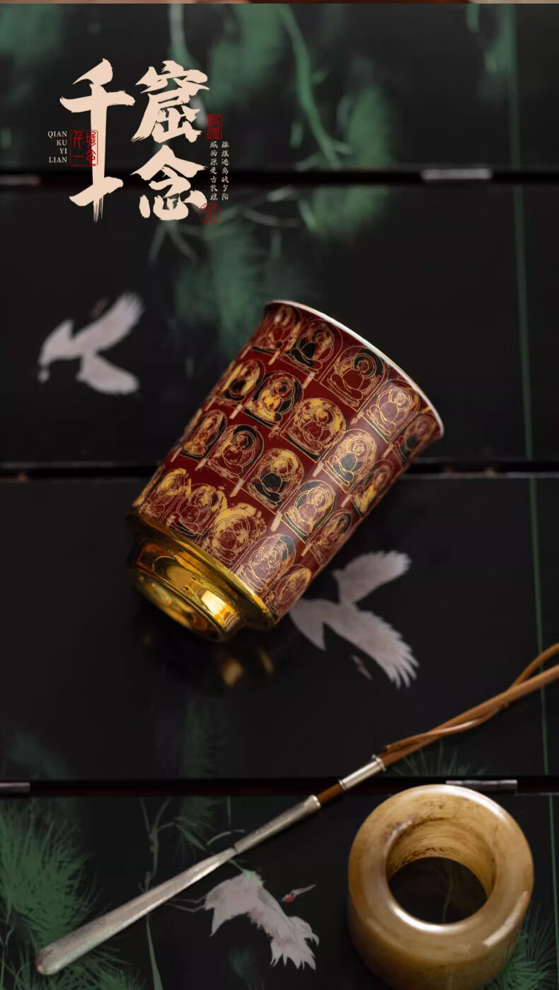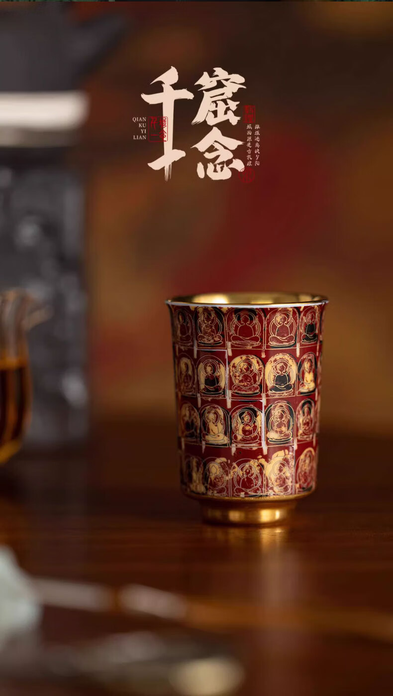 敦煌文创千窟一念茶杯主人杯创意鎏金陶瓷品茗杯生日结婚礼物
