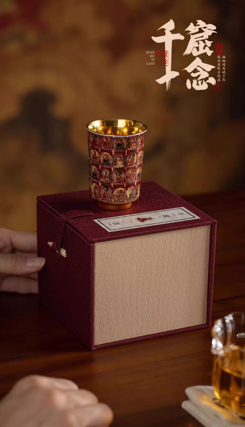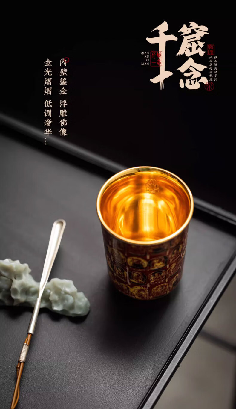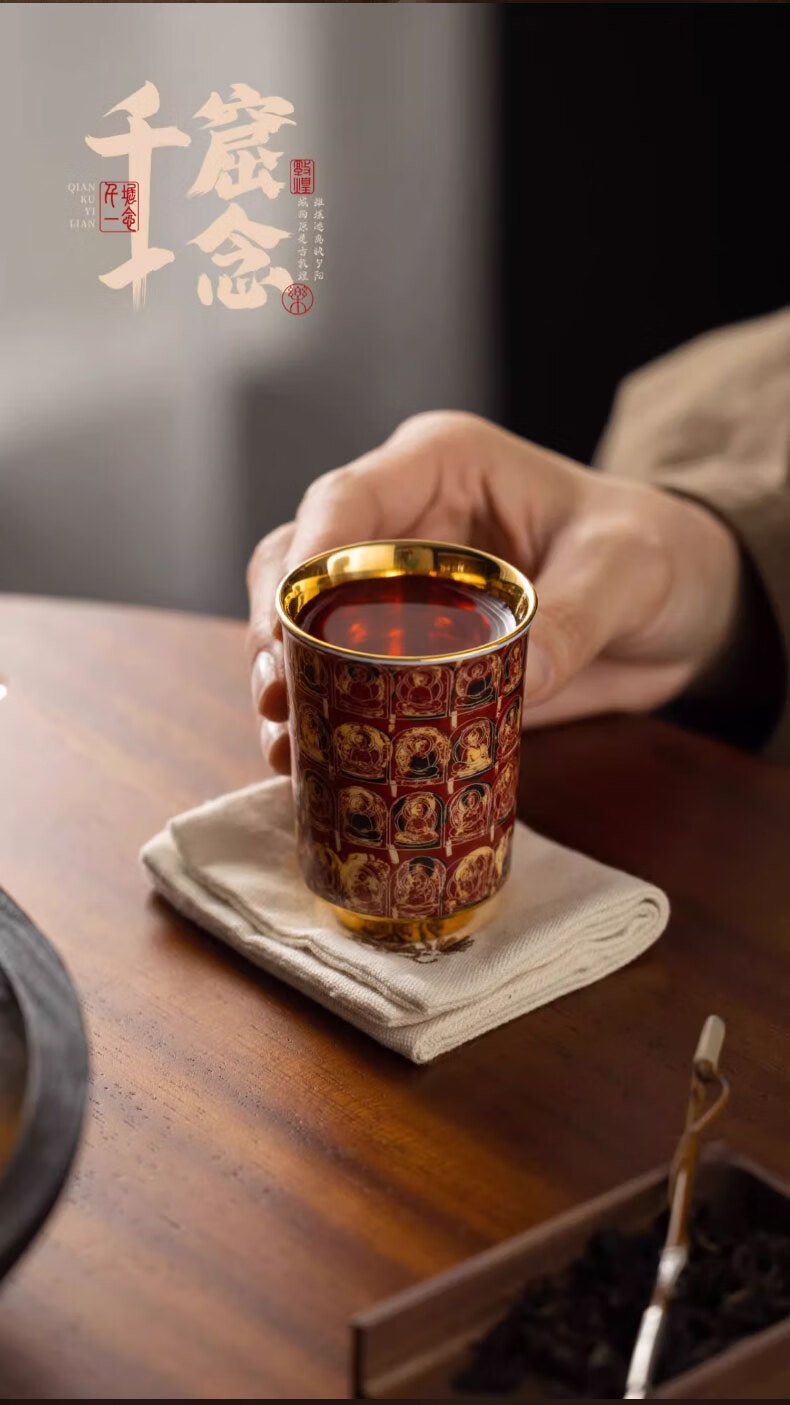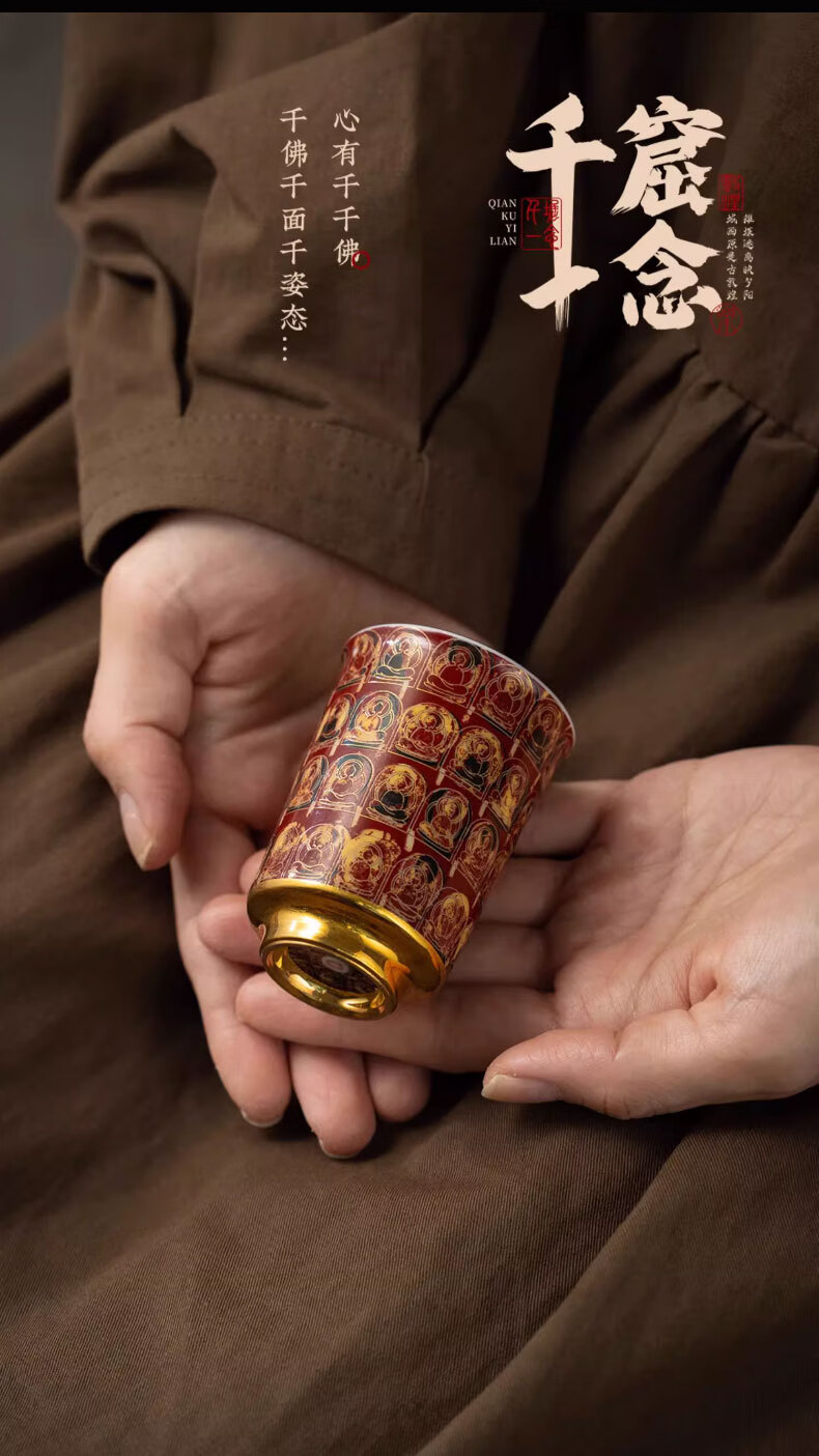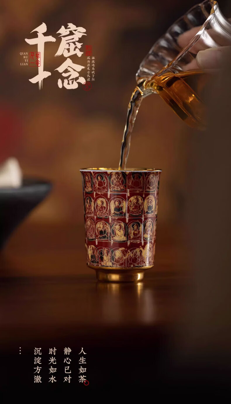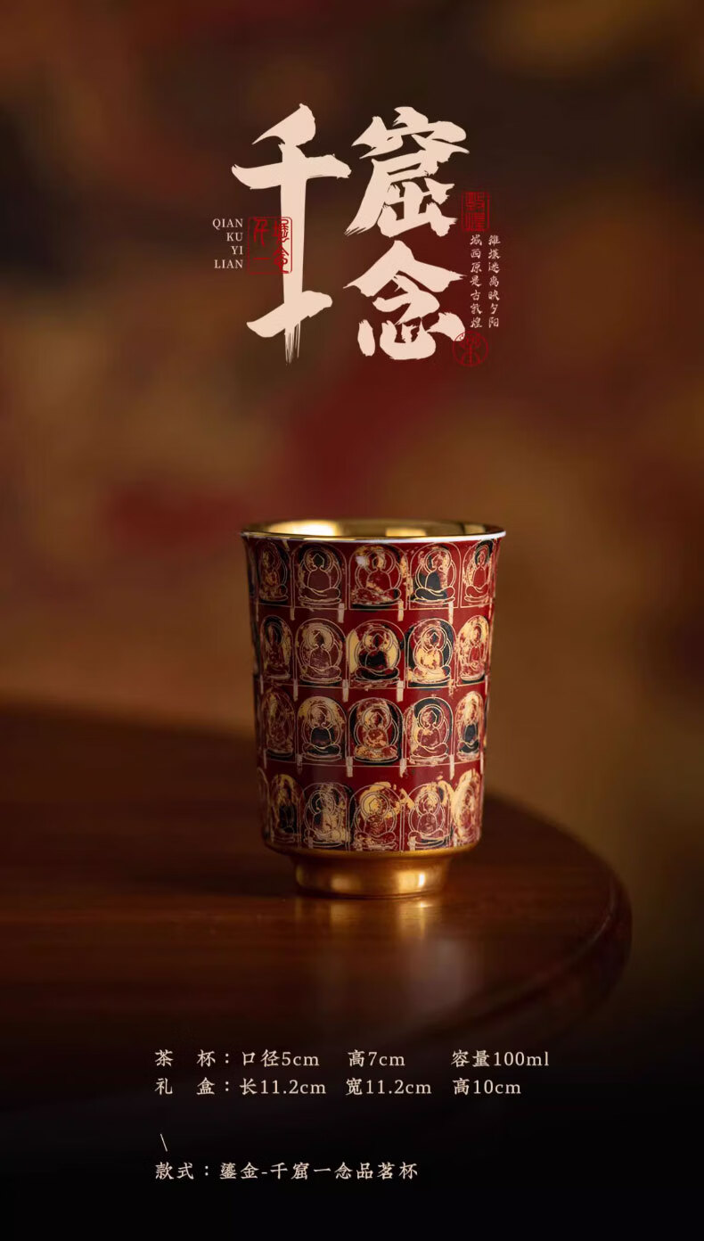 敦煌文创千窟一念茶杯主人杯创意鎏金陶瓷品茗杯生日结婚礼物