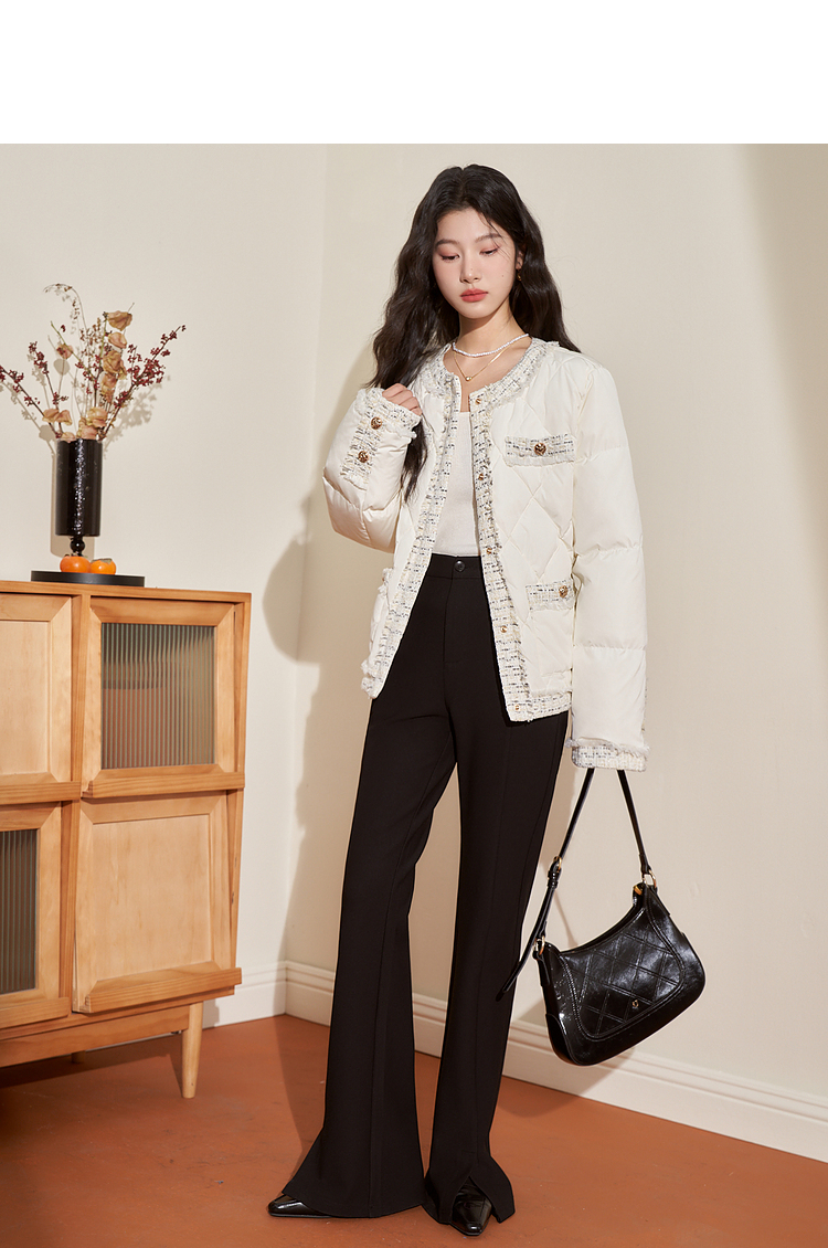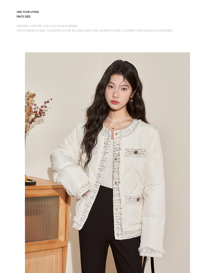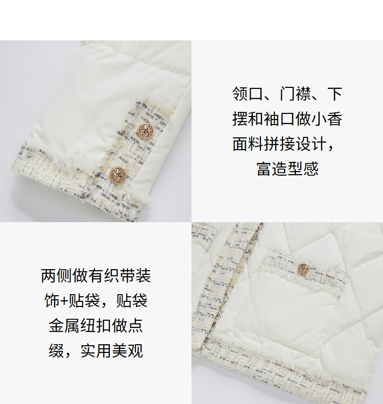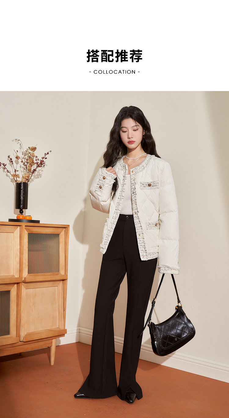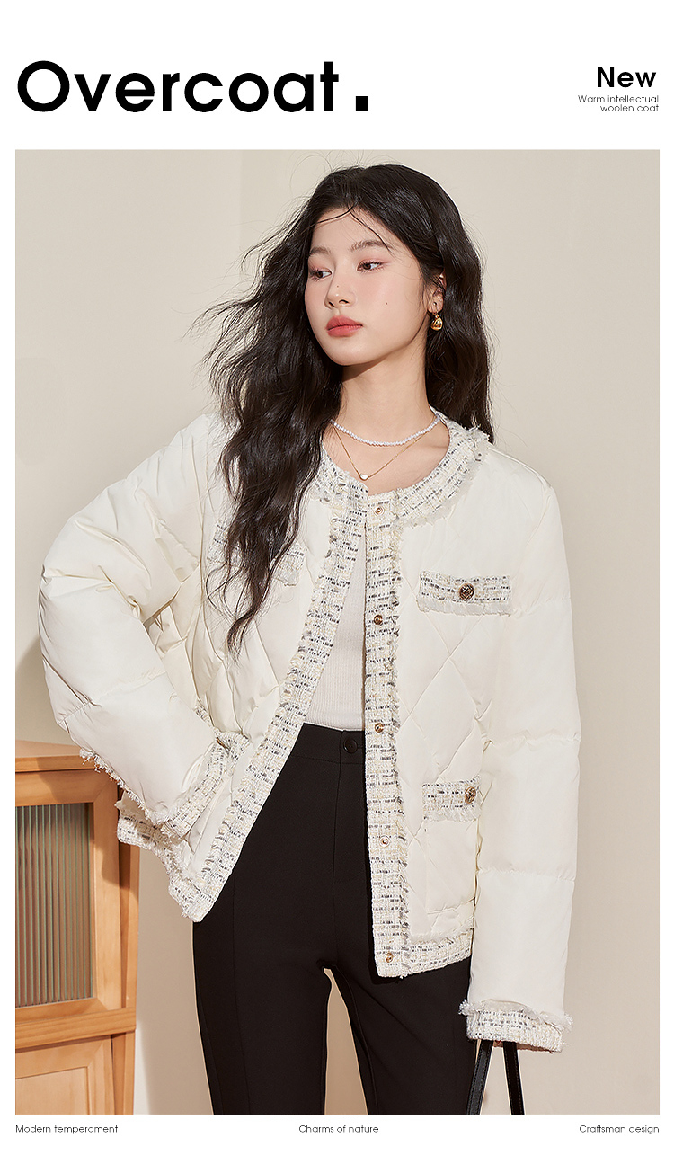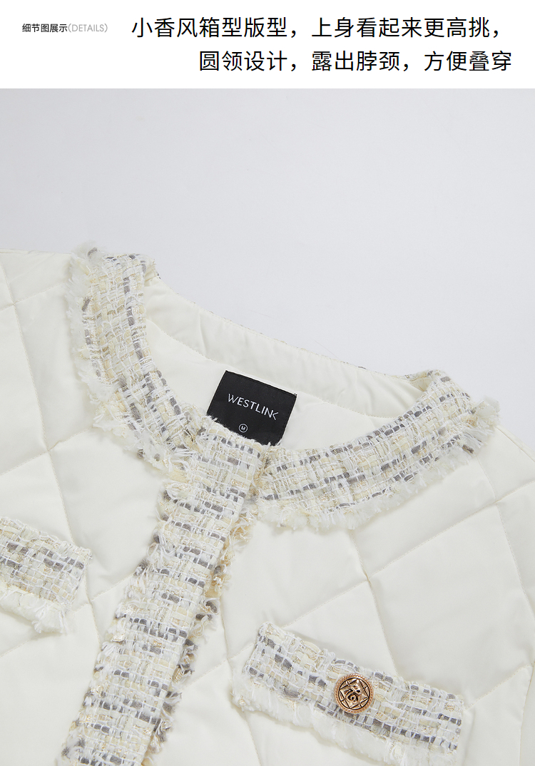 西遇轻薄圆领羽绒服女冬季新款拼接翻领白鸭绒小香风编织外套D2138047