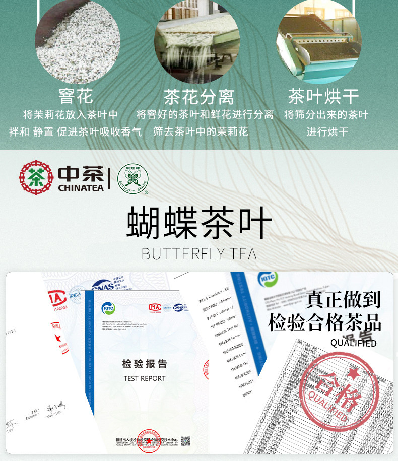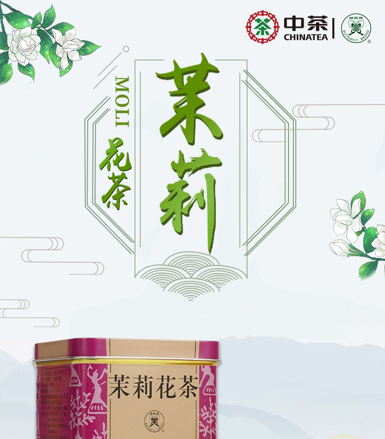 中粮-中茶蝴蝶牌茶叶特级茉莉花茶耐泡浓香型紫罐散装中粮出品227g