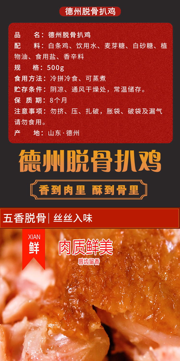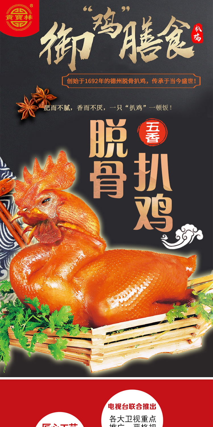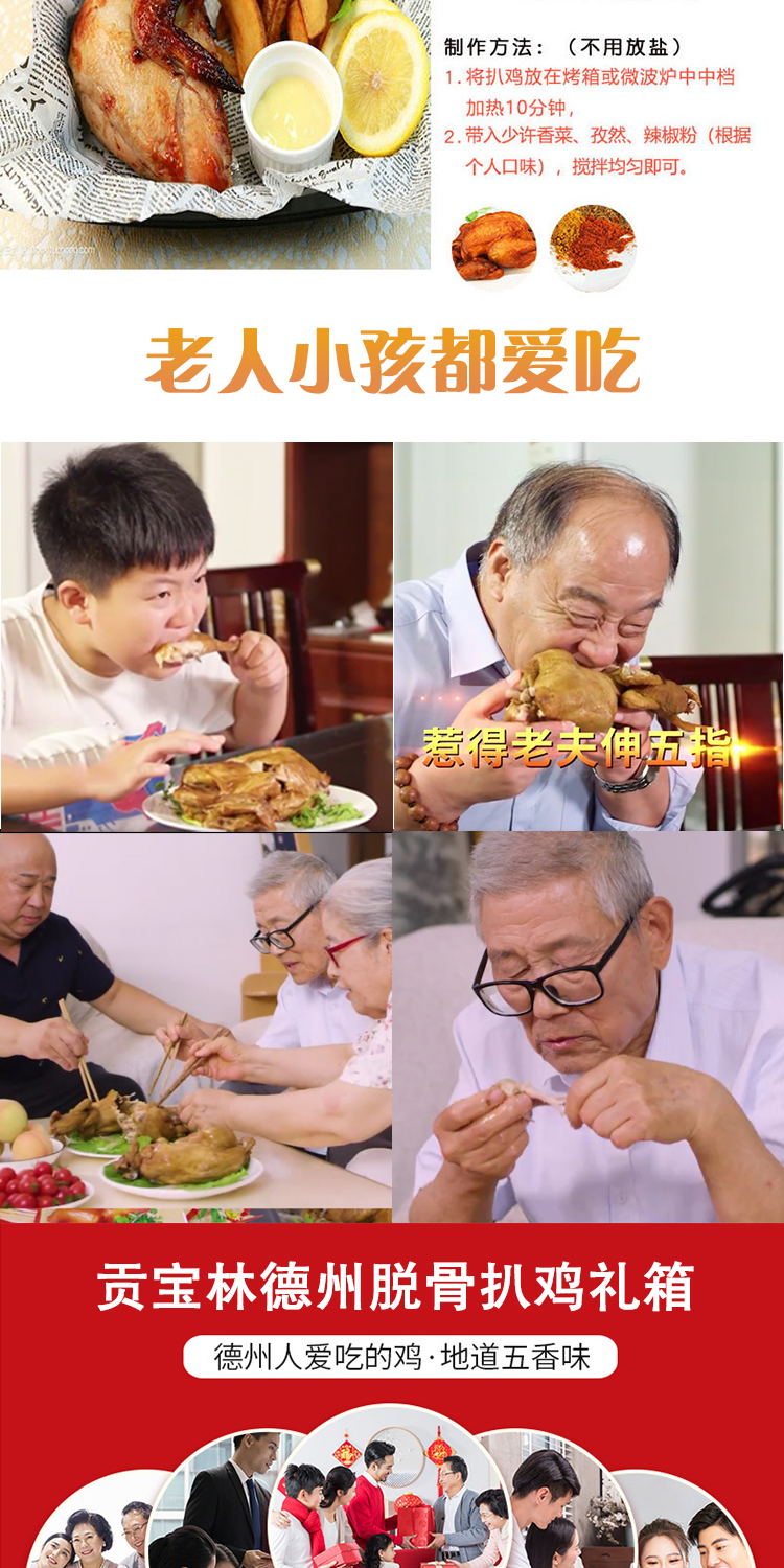 德州贡宝林脱骨扒鸡500g/只开袋即食手撕鸡