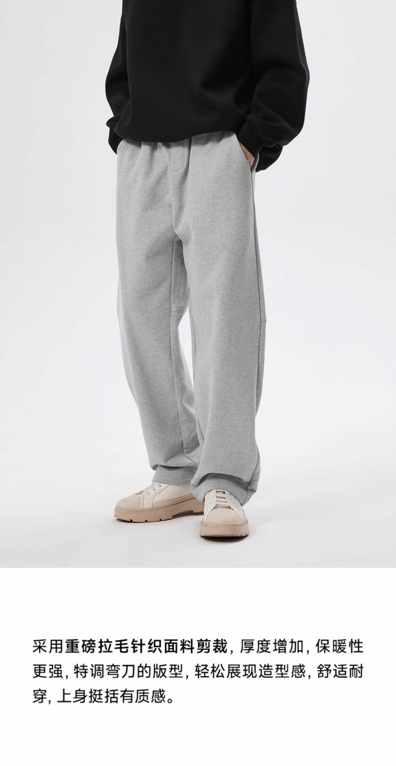 CHINISM赤尘 重磅纯棉拉毛弯刀卫裤男冬季加绒加厚男生直筒休闲裤