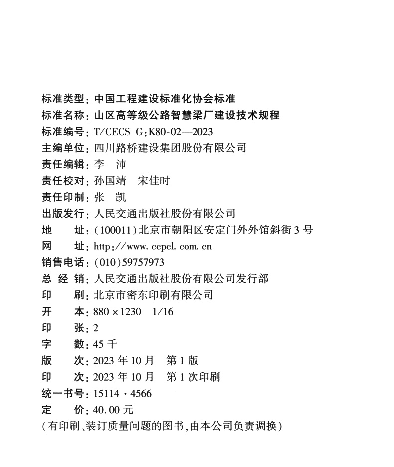 书名:山区高等级公路智慧梁厂建设技术规程(T/CECS G:K80-02—2023)