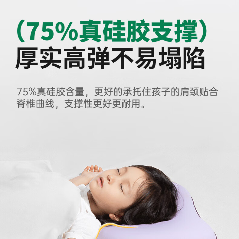 七西7C儿童枕头6-12岁可水洗四季通用枕头硅胶可机洗 亲亲枕 梦幻紫/活力黄