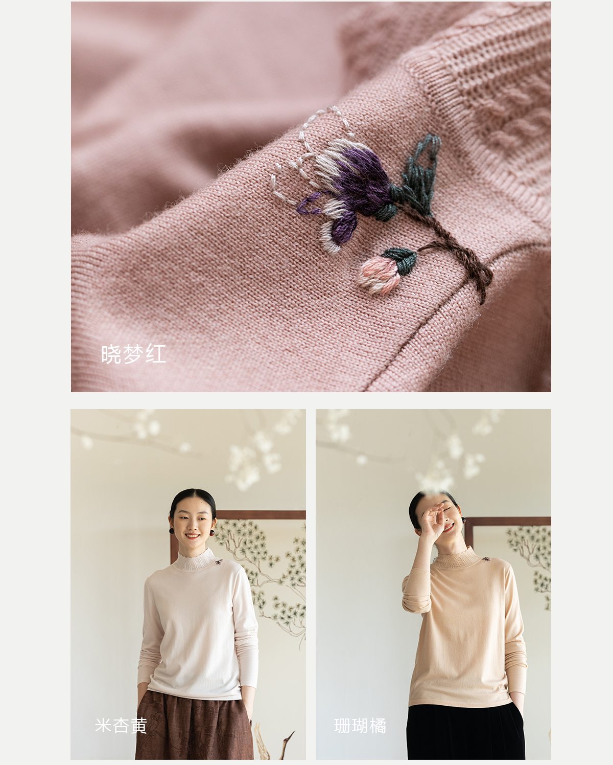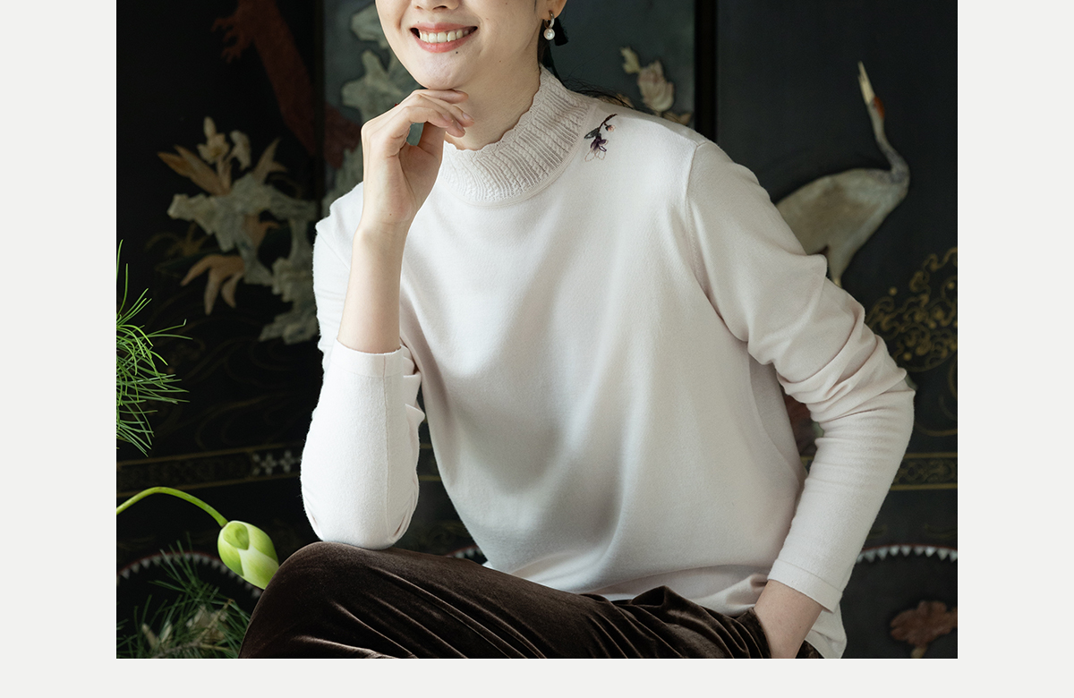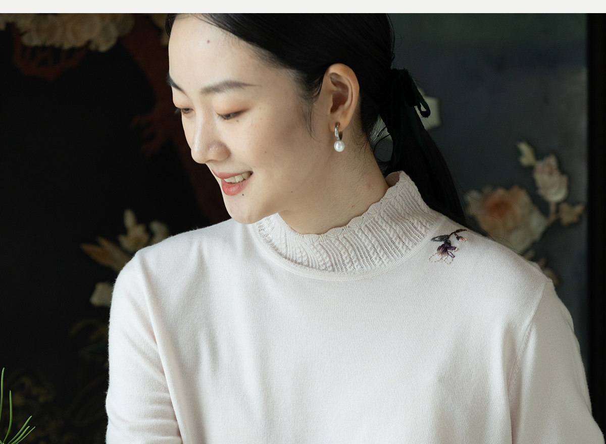 牧衣游原创 绵羊毛手工刺绣套头衫柔软舒适打底内搭毛织上衣 花域