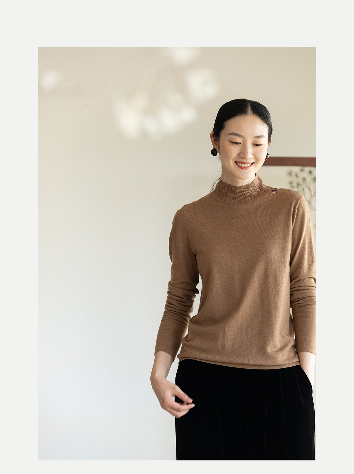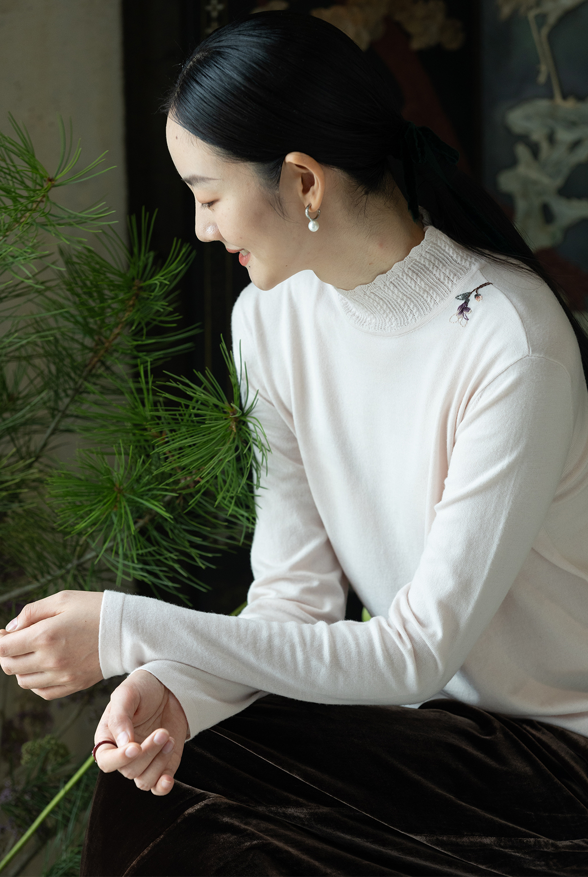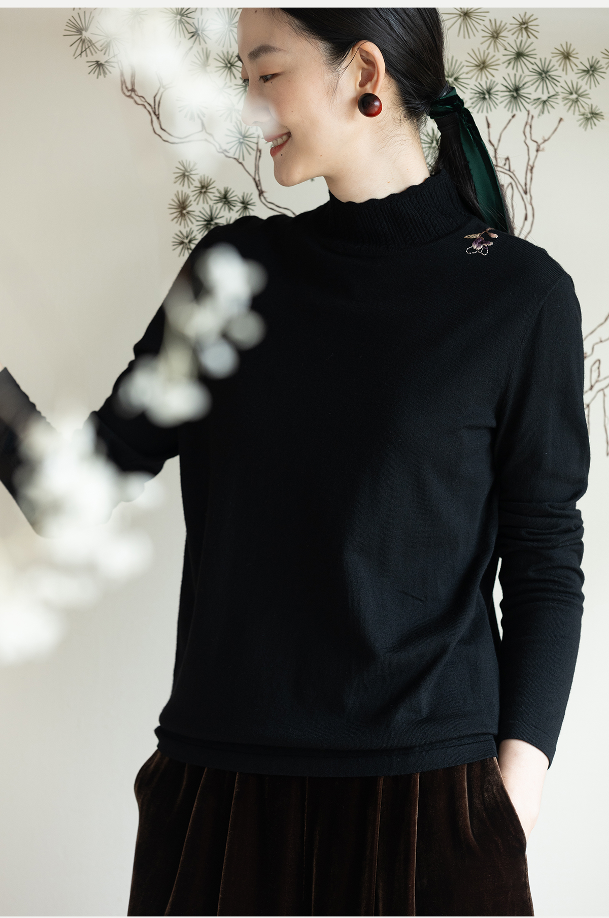 牧衣游原创 绵羊毛手工刺绣套头衫柔软舒适打底内搭毛织上衣 花域