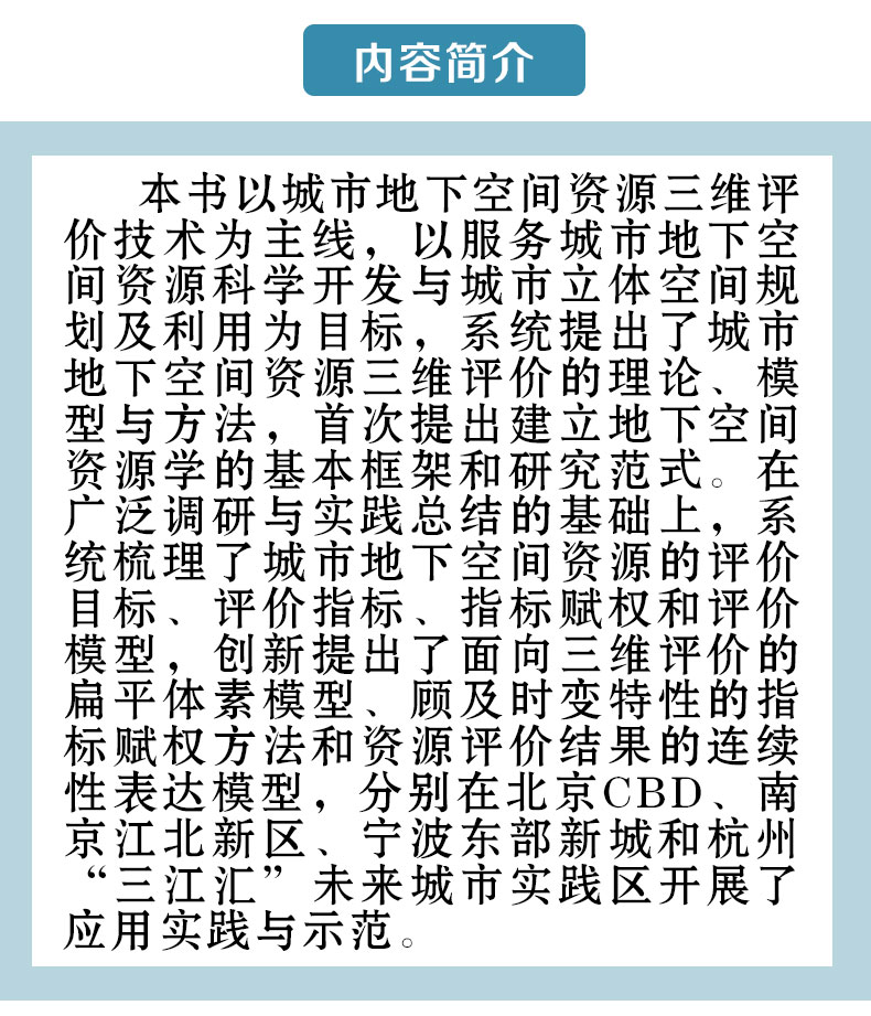 地球空间信息理论与应用丛书·城市地下空间资源三维评价理论、方法与实践