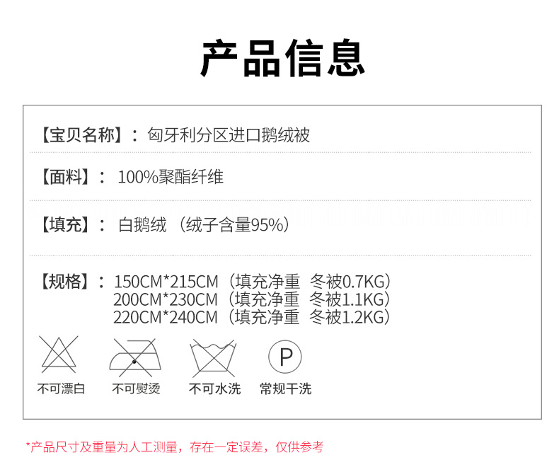 床笠尺寸与拍下的鹅绒被大小进行赠品尺寸匹配