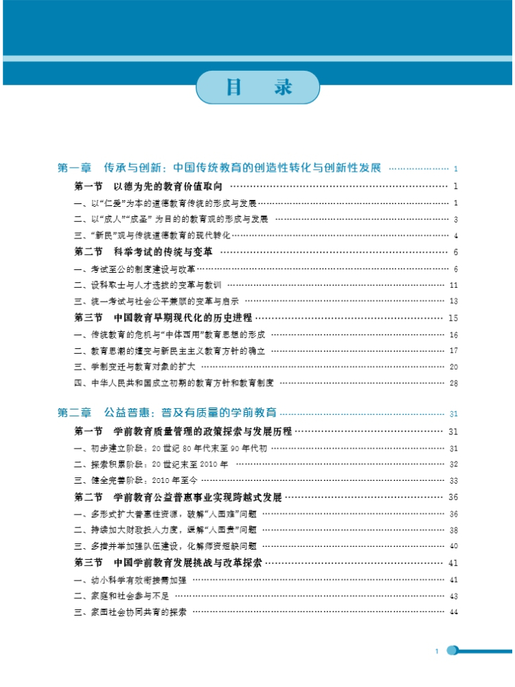本书为北京师范大学通识课配套教材。本书从整体观入手,让全体学生通过这个课程,结合当下的教育热点,将中国传统教育文化的思想和内容融合进来,让学生了解中国教育的智慧、中国教育的道路、中国教育的经验;让学生了解中国教育不仅仅包括狭义的学校教育,还包括悠久的社会教育、家庭教育等,从整体上影响育人,构建育人环境;让学生认清中国教育改革与发展的价值观;让学生了解、理解认识中国自身的社会主义教育体系的形成、改革发展,中国特色社会主义现代化的教育道路的形成所具有的国情,内在追求的公平性、均衡性;让学生了解中国教育改革与发展面临的主要问题及挑战,课程内容具有前瞻性、使命感,教会学生对未来的教育问题进行思考。