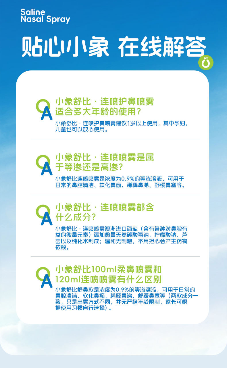 小象舒比连喷海盐水鼻腔护理喷雾1岁+儿童成人120ml(0.9%等渗款)