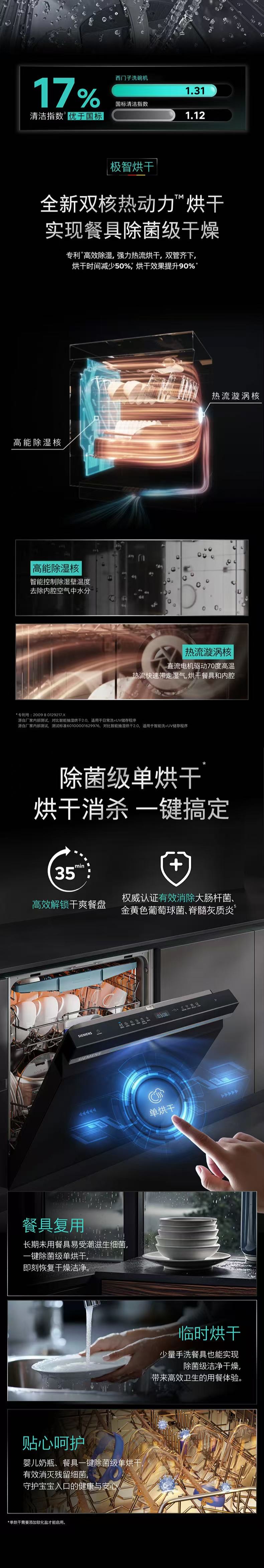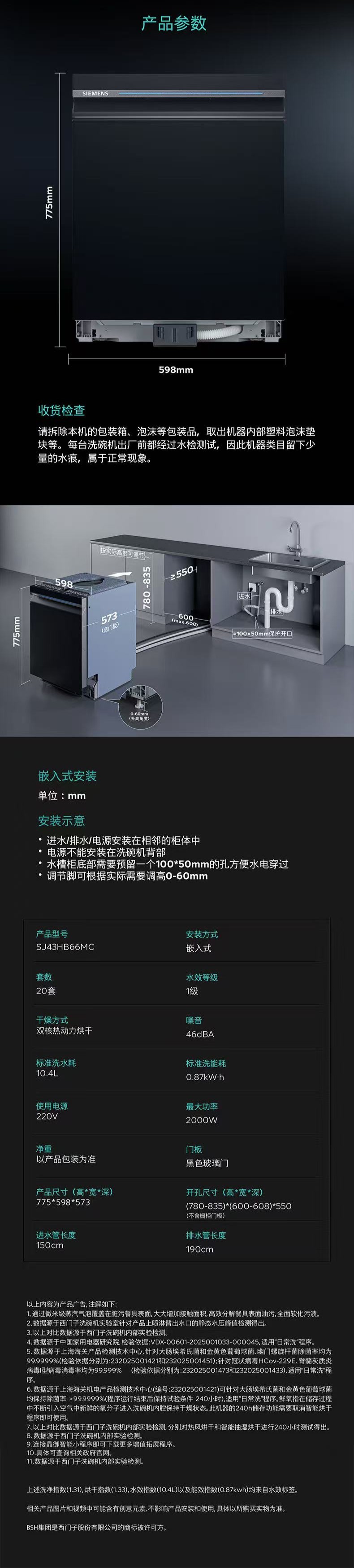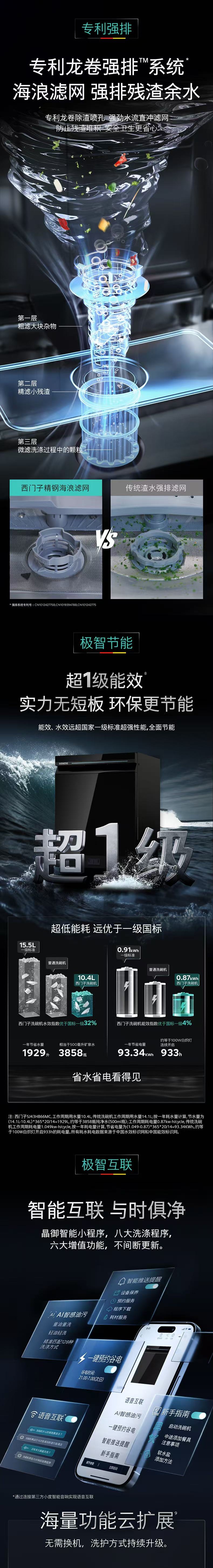 西门子(SIEMENS)【重磅新品】20+2套墅级大容量洗碗机 双核热动力 智感油污240小时长效抑菌存智能互联 SJ43HB66MC
