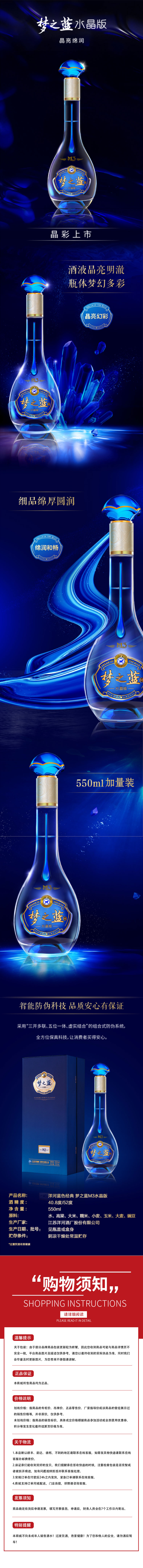 洋河 梦之蓝M3 水晶版 40.8度550ML 单瓶装(整箱为4瓶)