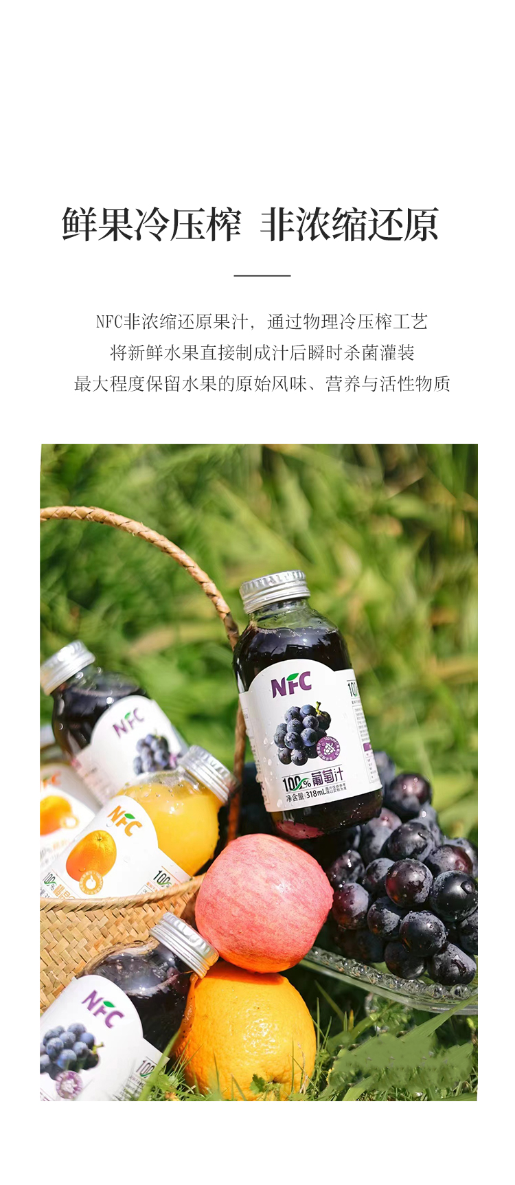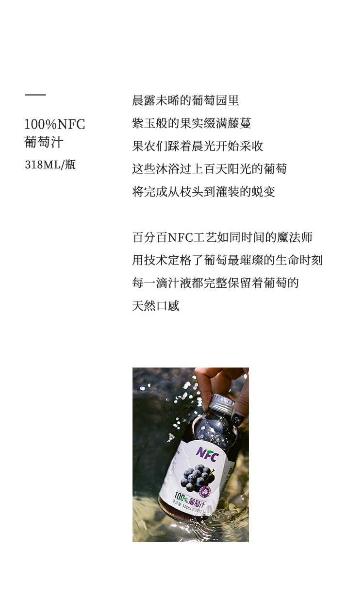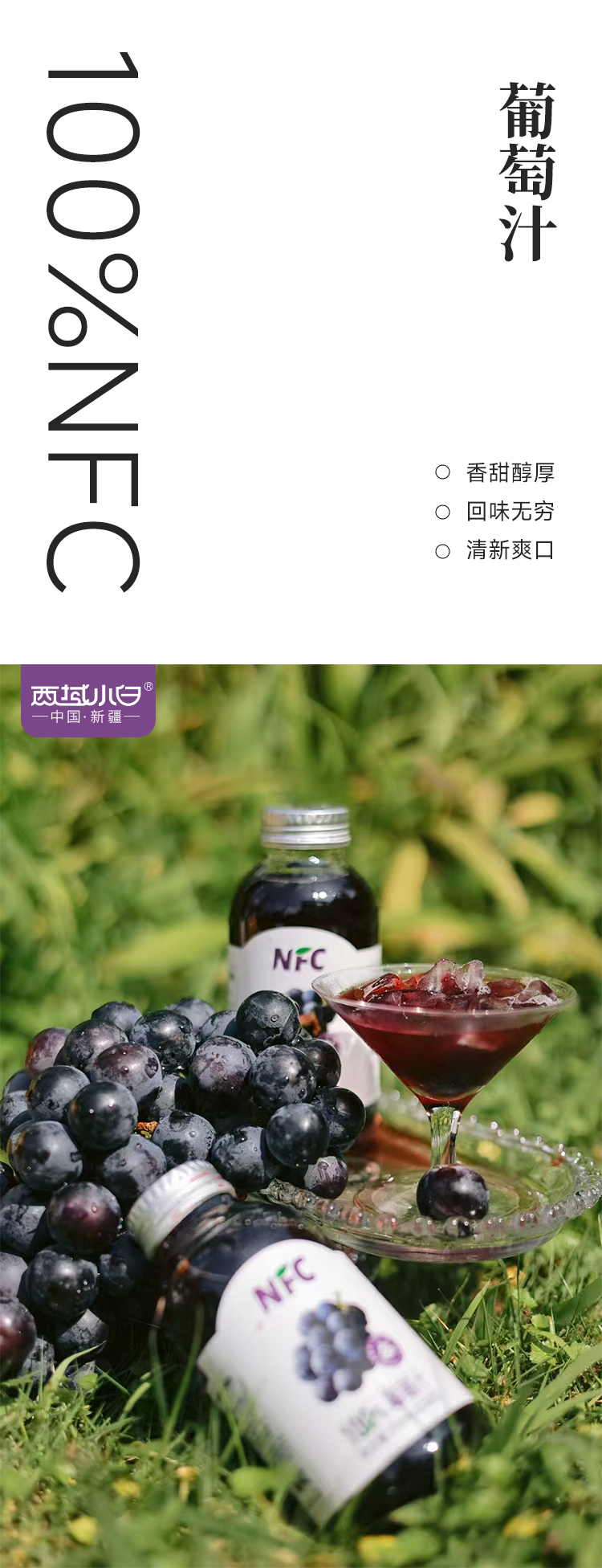 【新疆帮扶】西域小白丨NFC果汁系列 葡萄汁 318ml*5罐
